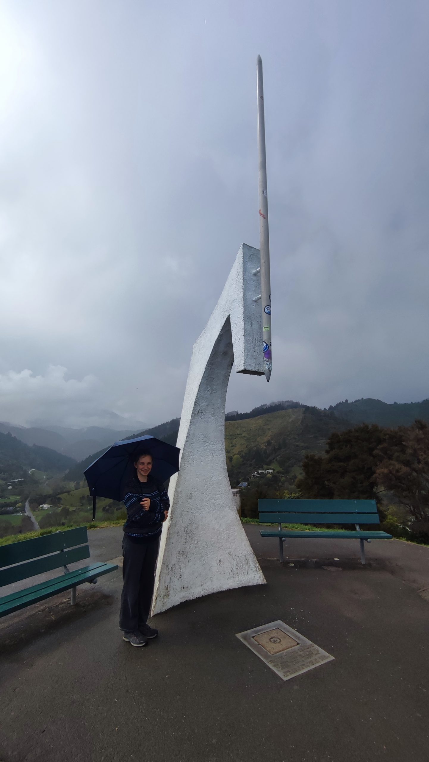Am nächsten Morgen sind wir zum „Centre of New Zealand“ gelaufen. Das Denkmal mit diesem Namen befindet sich auf einem kleinen Hügel im Norden von Nelson. Etwa eine halbe Stunde lang läuft man auf Sandwegen den kleinen Hügel hinauf, bis man oben auf einer Aussichtsplattform endet. Auch bei diesem kleinen Walk hat es leider geregnet, deshalb war die Sicht von dort nicht besonders weit. Trotzdem ist es natürlich sehr cool, diesen Ort zu besuchen. Er bildet zwar nicht die echte Mitte von Neuseeland (die befindet sich etwa 50km südlich), aber auf diesem Hügel wurden in den 1870ern die ersten trigonometrischen Messungen durchgeführt. Mit den damaligen Mitteln war Nelson, genauer gesagt dieser Hügel, als Ausgangspunkt dafür gar nicht schlecht!