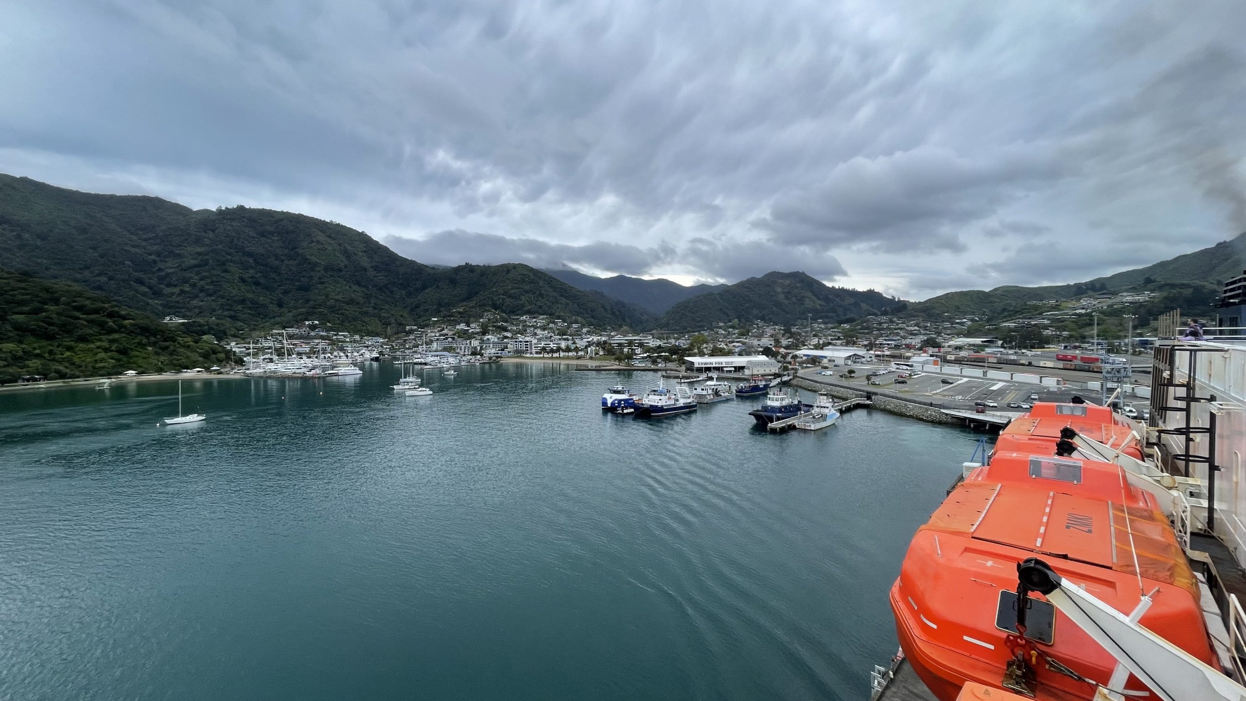 Nach einer Weile tauchten neben uns Netze von Fischern auf und nur wenig später haben wir auch schon die ersten Boote gesehen. Dann mussten wir noch ein letztes Mal links abbiegen und schon haben wir die erste Stadt der Südinsel vor uns gesehen: Picton! Das kleine Fischerdorf wirkt viel zu klein für die großen Schiffe und Menschenmassen, die täglich von dort abfahren oder ankommen. Die Häuser liegen hauptsächlich im Tal und nehmen nur ein kleines Stück der dahinter ansteigenden Berge ein. Dafür ist der kleine Hafen der Stadt gut gefüllt, es wirkt fast so als hätte jeder dort lebende Mensch ein eigenes Boot. Allzu lange konnten wir die Stadt jedoch nicht von dem Schiffsdeck aus betrachten, denn für uns war es Zeit dieses mit unserem Auto wieder zu verlassen.
