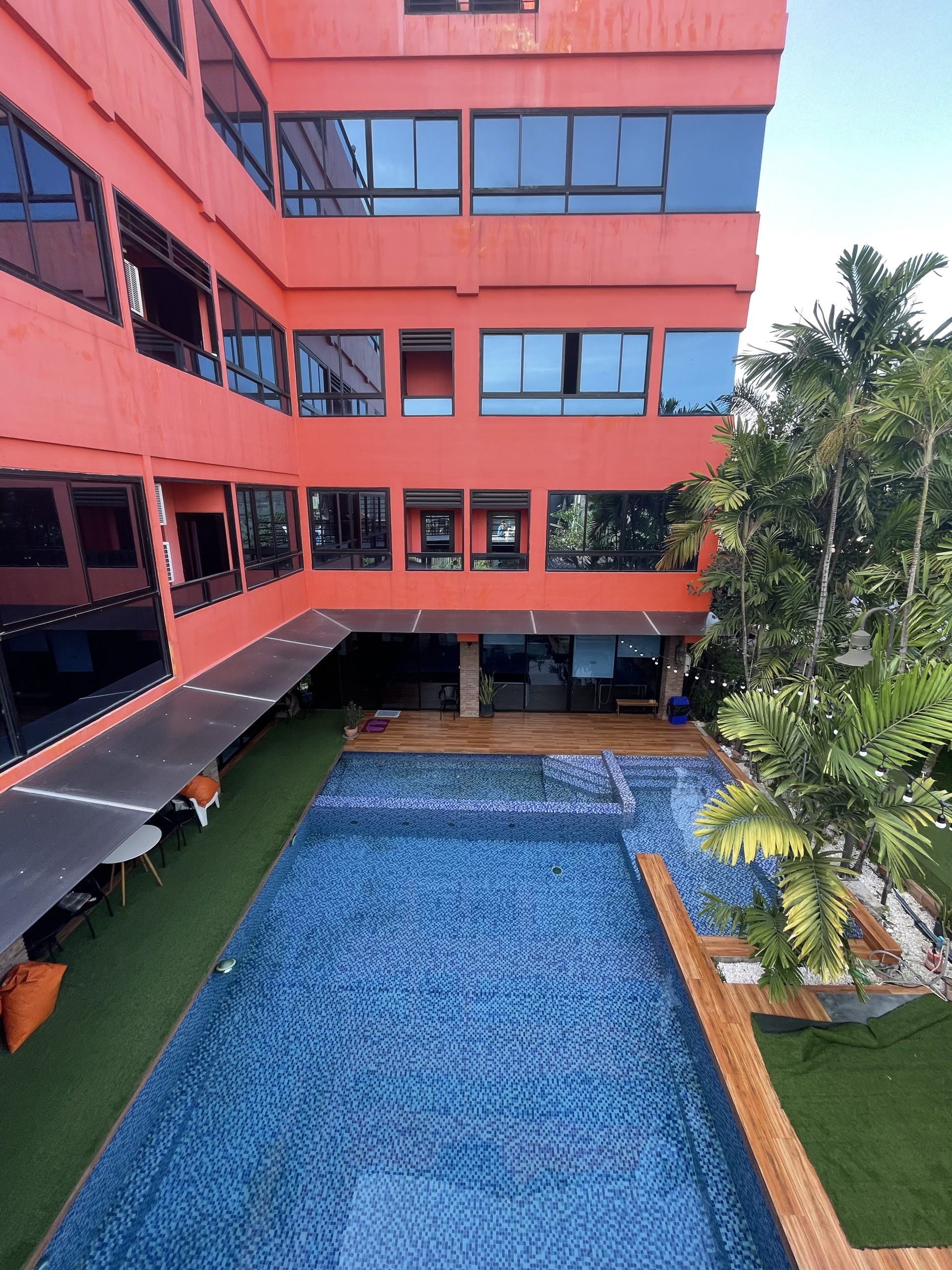 Kommen wir zurück zu den positiven Seiten Bangkoks. Denn ein für uns sehr besonderes Datum haben wir auch in Bangkok verbringen dürfen. Denn kurz vor Weihnachten waren Beeke und ich zwei Jahre zusammen. Für diesen Anlass haben wir uns drei Nächte in ein Hotel eingemietet – für unsere Verhältnisse ein absolutes Luxushotel: Großes Doppelbett, eigenes Bad, geteilter Pool im Garten und als Highlights: Eine eigene Badewanne mit Whirlpool-Funktion und Frühstück inklusive! Teuer war das ganze zum Glück trotzdem nicht, so haben wir uns auch die drei Nächte leisten können. Für etwa das Dreifache unseres durchschnittlichen Hostelpreises haben wir hier unseren Jahrestag schön genießen können und uns gedanklich ein wenig von dem Stress der Großstadt abgetrennt. Aus dem Hotel raus sind wir eigentlich nur um die Wäsche zu waschen oder Essen zu suchen.