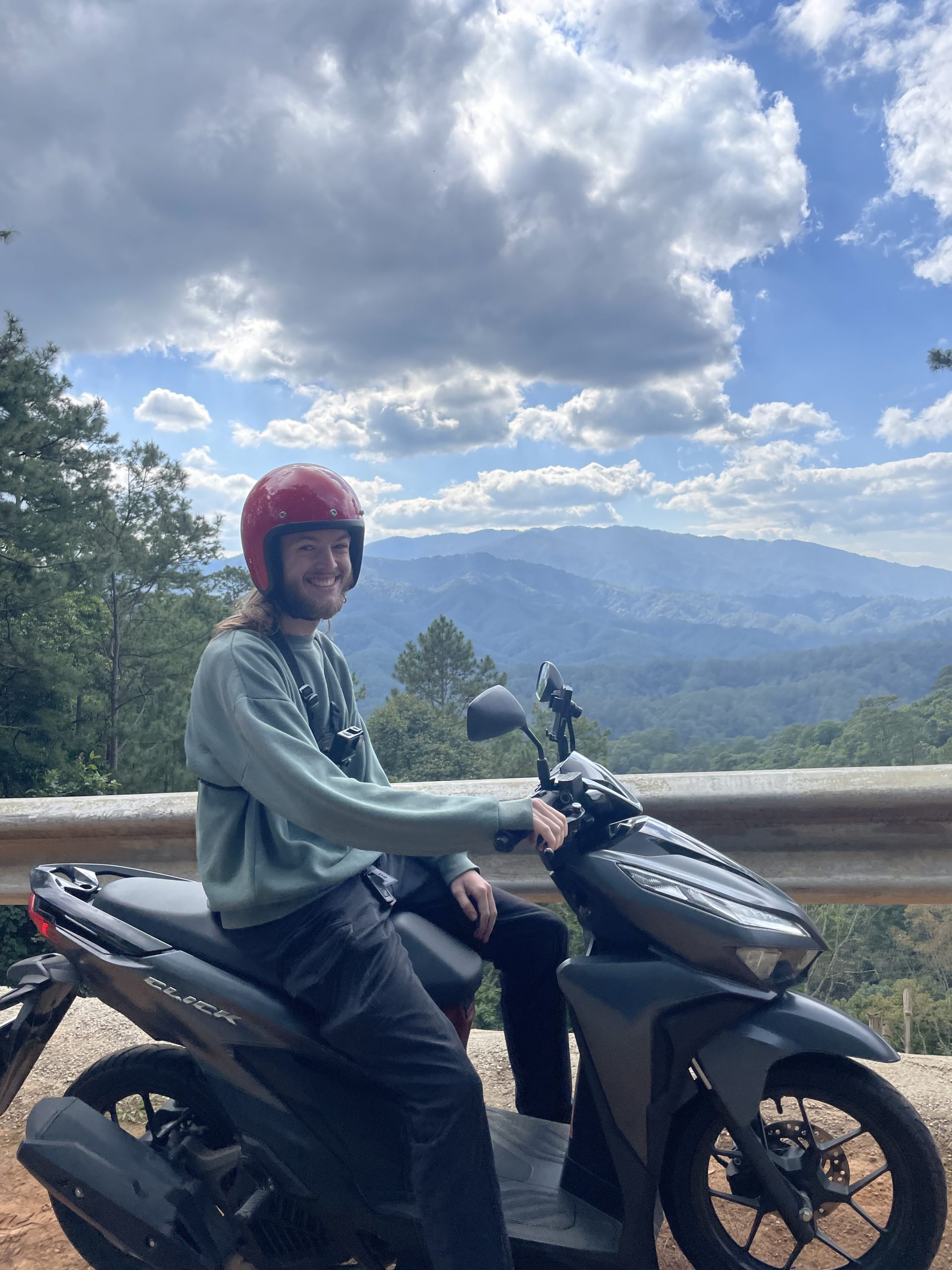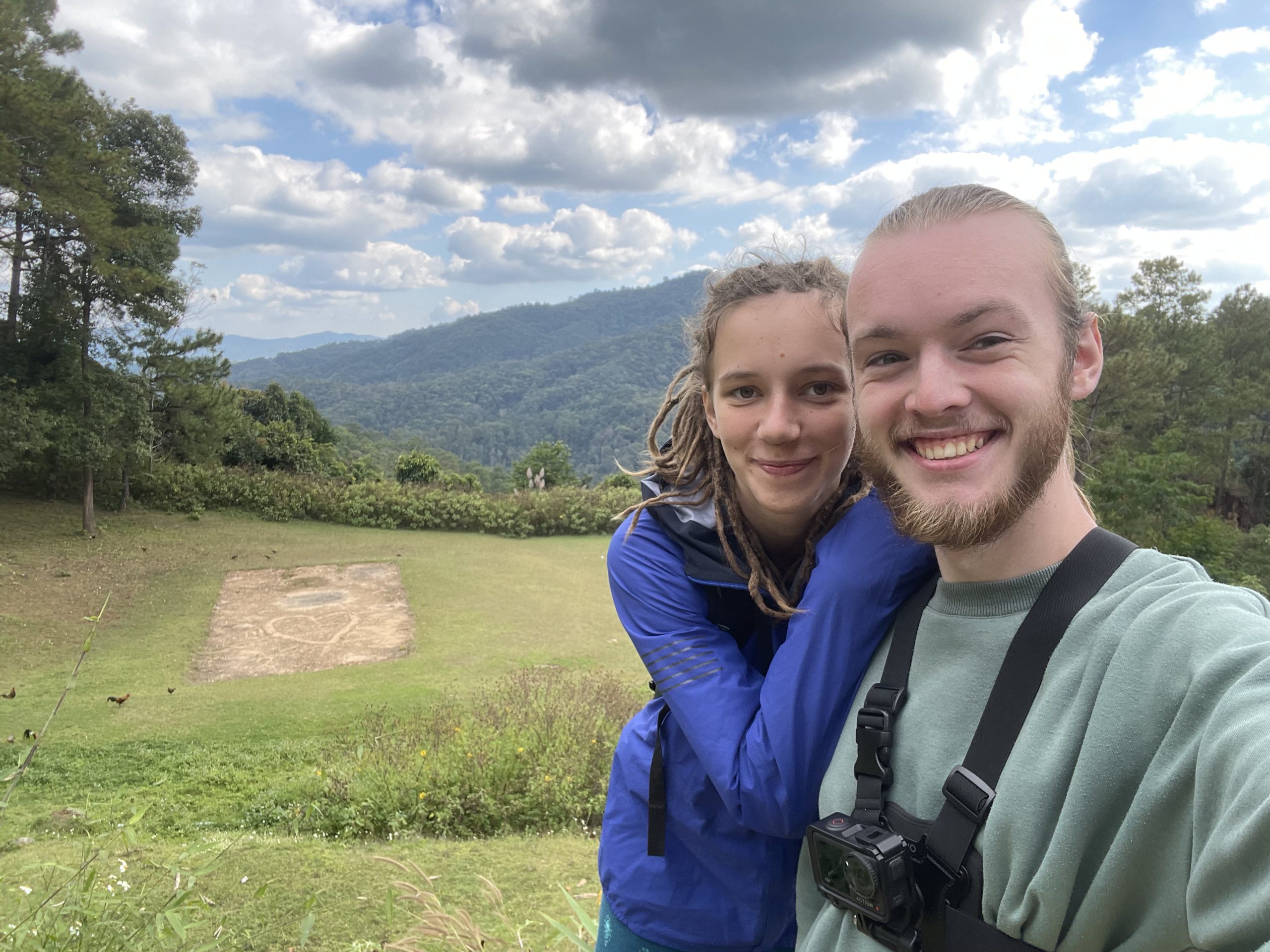 Am 03.01., dem letzten vollen Tag mit unserem Roller, haben wir noch einen großen Ausflug gemacht. Etwa drei Stunden nordwestlich von Chiang Mai liegt Pai, eine kleine Stadt, die als Touristenstadt hauptsächlich für den einfachen Zugang zu Drogen und das „Tipsy Tubing“ – mit Bier auf großen Badeinseln den Fluss runterfahren – bekannt ist. Aber auch die wunderschöne Landschaft in der Nähe ist bekannt. Selbst auf der Straße von Chiang Mai aus dahin soll man immer wieder tolle Aussichten haben. Wir sind also gegen 11 (ich war immer noch ein bisschen krank und habe uns eine Stunde aufgehalten) auf den Roller gestiegen und Thies hat uns nach Pai (und übrigens auch zurück) gefahren. Auch wenn die Altstadt von Chiang Mai sehr klein ist, gehen die Ausläufer der Stadt noch lange weiter. Die erste Dreiviertelstunde haben wir in den Außenbezirken der Stadt auf einer Schnellstraße verbracht. Danach wurde der Weg zum Glück Roller-Freundlicher, es macht wirklich keinen Spaß, wenn Autos direkt neben einem vorbei düsen. Danach wurde die Straße schmaler, kurviger und steiler. Da Chiang Mai in einem Bergtal liegt, geht es in so ziemlich jede Richtung nur bergauf. Die Ausblicke waren wirklich wunderschön, wir konnten immer wieder ins Tal und auf die gegenüberliegenden Berge gucken, da geht die Zeit viel zu schnell vorbei! Wir haben in einem kleinen Restaurant am Straßenrand Nudelsuppe gegessen. Das warme Essen tat sehr gut, denn im Schatten war es – mal wieder – arschkalt. Dafür konnten wir in jeder von Sonne beleuchteter Stelle wieder auftauen, es war also ein auf und ab der Gefühle!