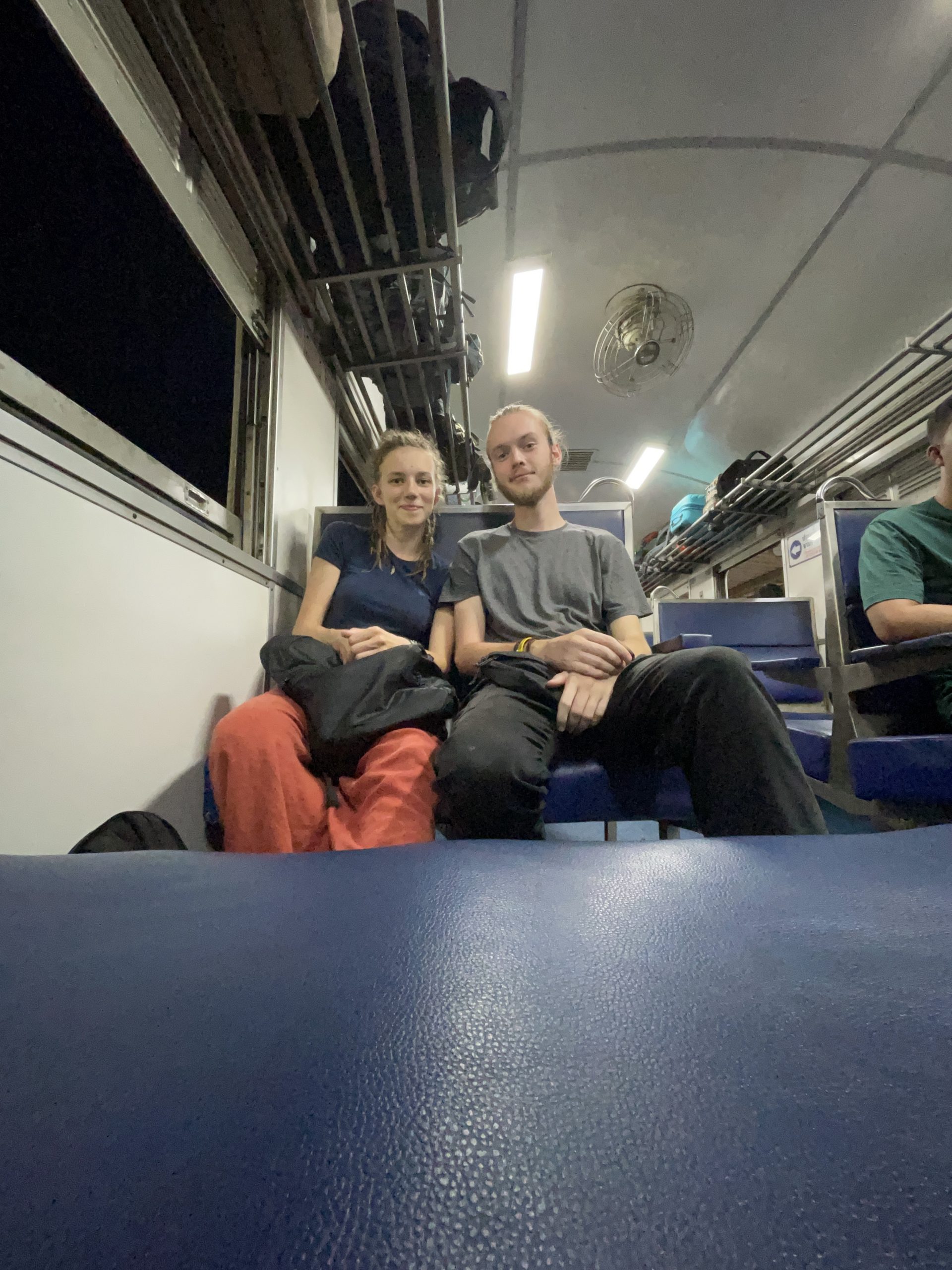Gegen 22 Uhr haben wir versucht einzuschlafen. Dort wurde mir langsam bewusst, dass das schwieriger werden könnte, als gedacht. Wie schon auf der Fahrt nach Surat Thani blieb das Licht die ganze Nacht an, es war laut durch das Rattern des Zuges, die Fenster waren auf und es hat sehr gezogen, aber vor allem war es unfassbar unbequem! Normalerweise bin ich wirklich nicht wählerisch mit meinen Schlafplätzen, aber das war wirklich der unbequemste Ort meines Lebens. Die Lehne war nicht hoch genug, um den Kopf dagegen zu lehnen und auf den Holzbänken musste man sich ständig umsetzen, weil es so hart war. Zwischenzeitlich habe ich mich sogar auf den Boden gesetzt und den Kopf auf die Bank gelegt, weil das bequemer war, als der Sitz selbst.