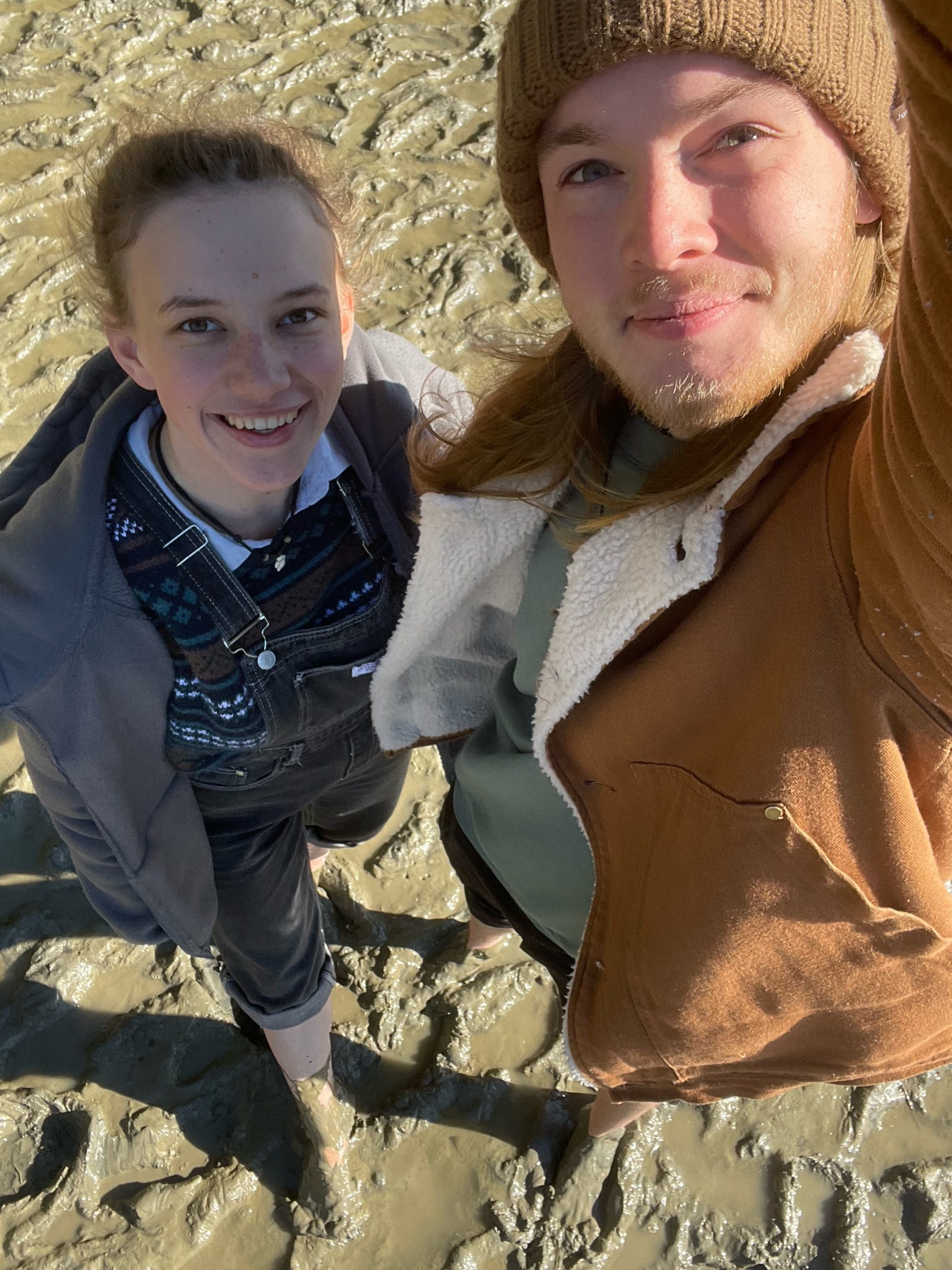 Da der Weg zum Strand entsprechend oft unter Wasser steht, ist er auch ganz schön matschig. Und ich meine nicht „Ih da ist ein Tropfen Matsch an meiner Hose“ matschig, ich meine so matschig, dass wir bis zu 30 Zentimeter tief in die Erde eingesunken sind und darauf hoffen hätten müssen, dass unsere Schuhe auch wieder mit nach oben kommen. Wir waren aber vorausschauend und haben schon bei ein paar Menschen vor uns bemerkt, wie matschig ihre Schuhe geworden sind und haben sie nach den ersten paar hundert Metern ausgezogen und auf einem kleinen Felsen liegen gelassen – eine gute Entscheidung. Was unsere Matschwanderung dann aber doch wieder erschwert hat war der Fakt, dass unter dem ganzen Matsch eine Schicht aus Muscheln und ihren Überresten lag, die das Gehen nicht gerade einfacher machten. Jeder Schritt traf auf viele kleine Glasscherben, nur gedämpft durch den vielen Matsch. Außerdem war der Strand übersäht mit winzig kleinen Krabben, die sich eingegraben hatten und sich über den Besuch unser Füße sicherlich nicht gerade gefreut haben.