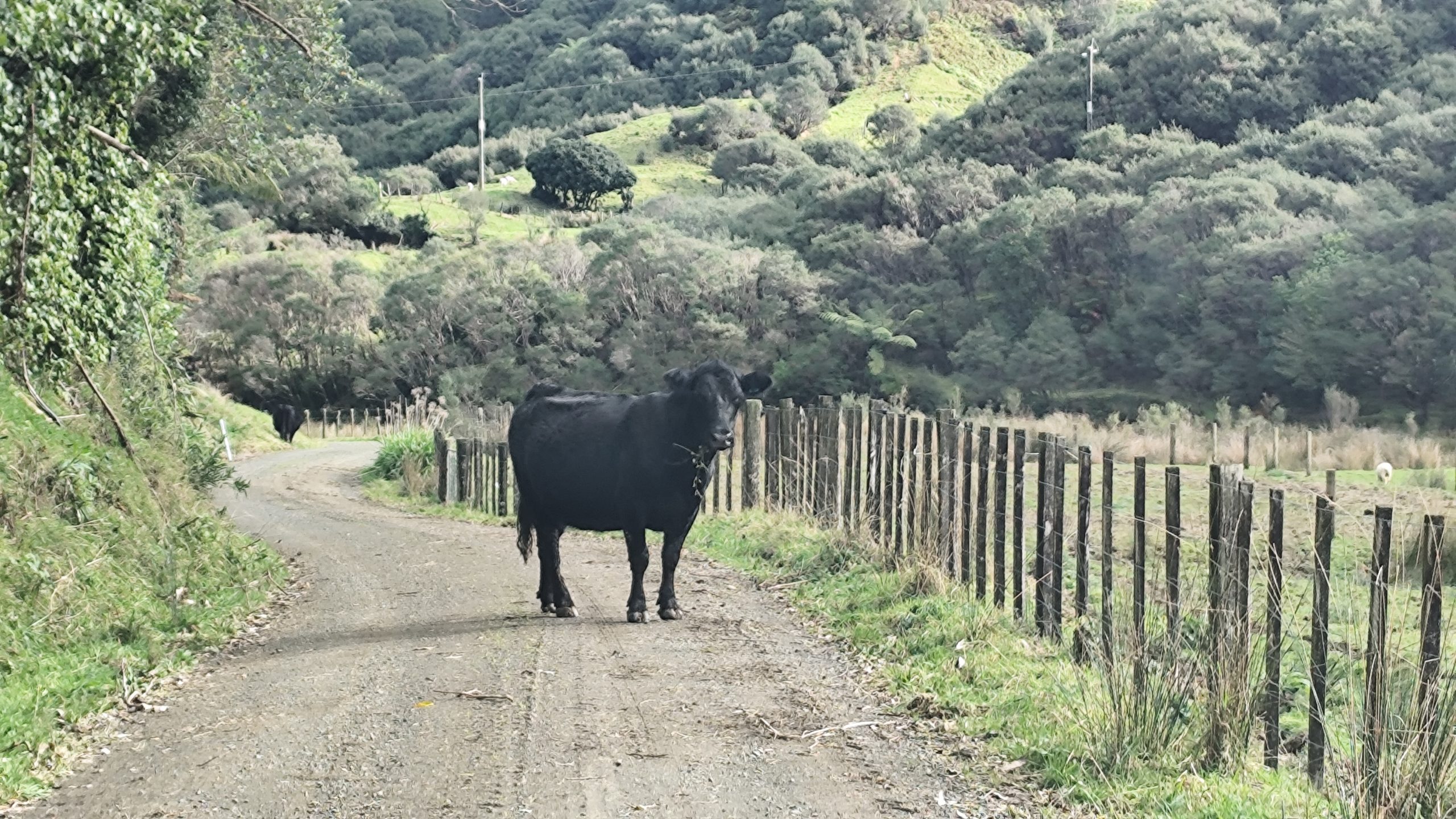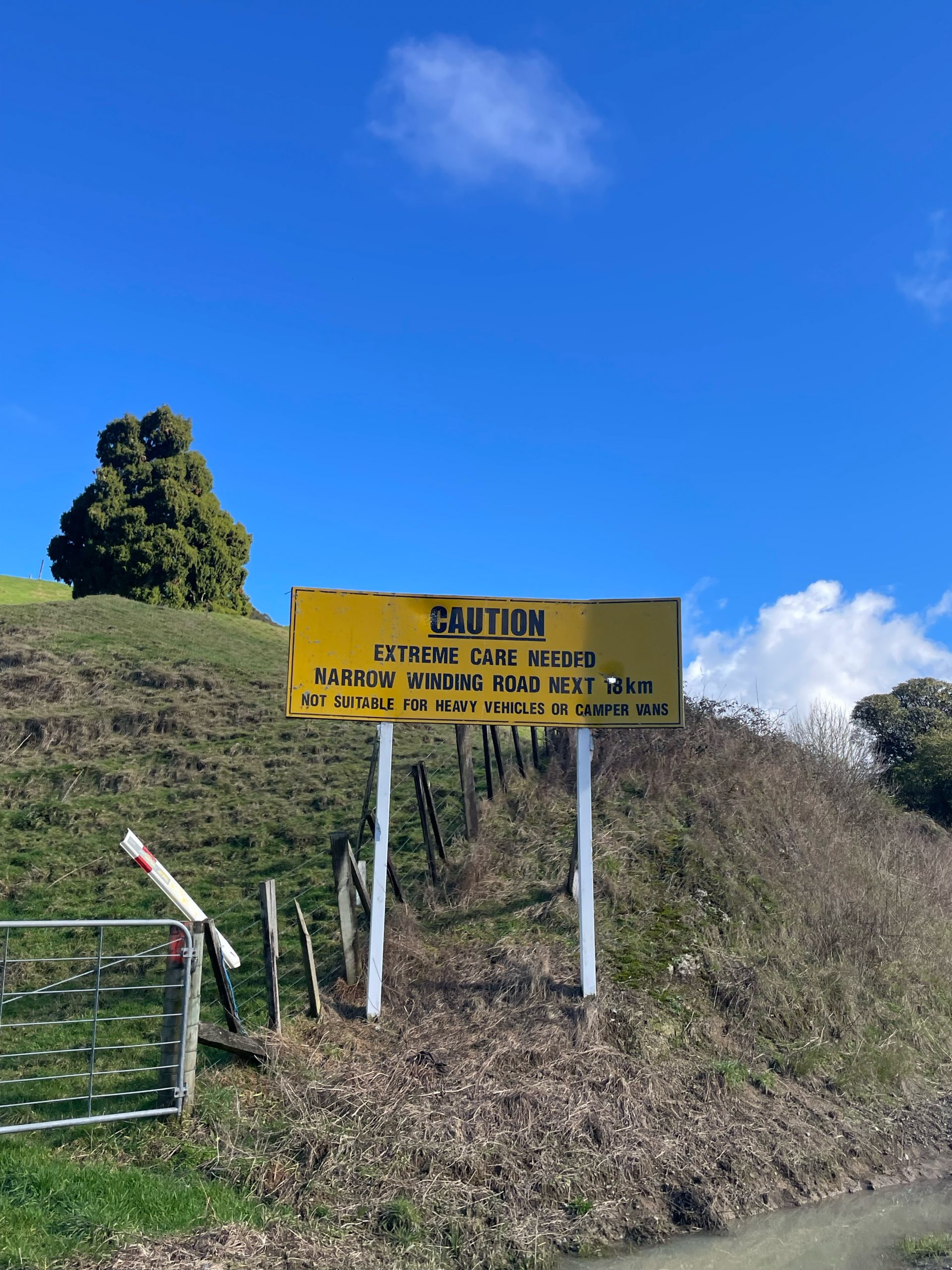 Wir haben auf dieser Straße so viele ausgebüxte oder frei lebende Ziegen gesehen, dass wir uns mittlerweile sicher sind, dass es in Neuseeland eine geheime Gesellschaft an Ziegen gibt, die ganz im Stil der Bücher aus der „Warrior Cats“-Reihe eine geheime Zivilisation aufgebaut haben. Leider hat es hin und wieder auch ein Opfer der Ziegen-Zivilisation gegeben, oder aber die Autofahrer waren einfach zu schnell in der Kurve. An einer weiteren Stelle der schmalen Straße stand eine ganze Kuhherde auf dem Weg, die aber relativ verteilt an den Straßenrändern ihren Platz fand. Die paar wenigen Kühe die sich auf unsere Straße verliefen machten auch brav Platz, nachdem Beeke sie genug bestaunt hatte.