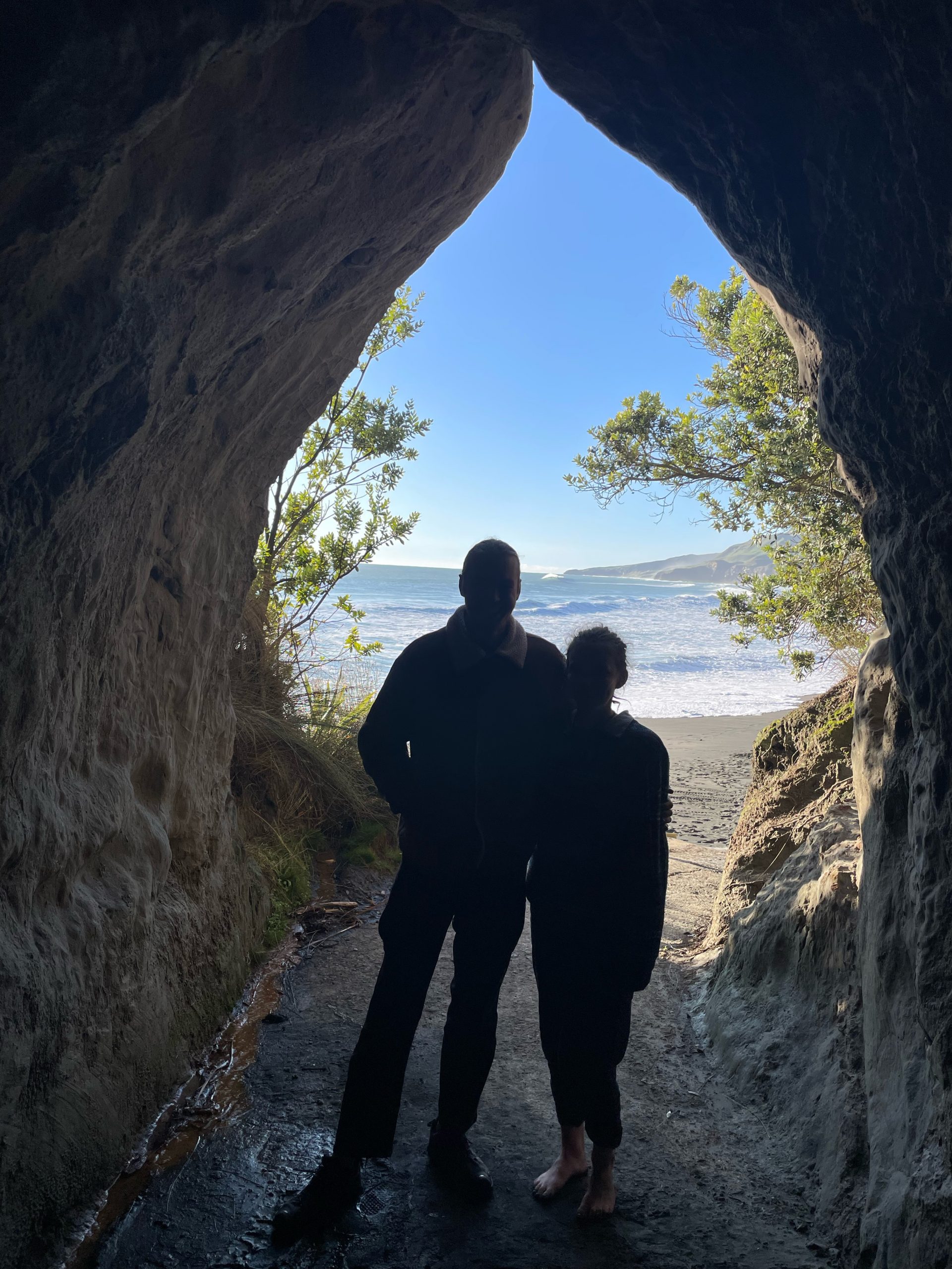 Ohne einen extra Parkplatz oder Beschilderung standen wir nun vor einem Loch in einer sehr großen Felswand. Genauer gesagt war dieses Loch ein Tunnel, der vor vielen Jahren gebaut wurde um Vieherden besser an den Strand treiben zu können. Entsprechend war der Tunnel auch gerade so groß genug für einen Menschen und einige Kühe, dafür aber etwa 50 Meter lang. Am anderen Ende des Tunnels konnten wir Licht sehen – Licht, das uns zu einem wunderschönen Strand mit schwarzem Sand führte! Dadurch, dass dieser Ort so abgelegen ist, waren wir dort so gut wie alleine. Der Strand war wie aus einem Gemälde, umgeben von hohen Felswänden und einfach perfekt. Einige Teile des Strandes waren durch die eingehende Flut schon abgeschnitten, wir konnten dort aber trotzdem eine ganze Weile verbringen. Der Tunnel zum Strand eignete sich auch hervorragend als Foto-Spot, den wir auch voll ausgenutzt haben.
