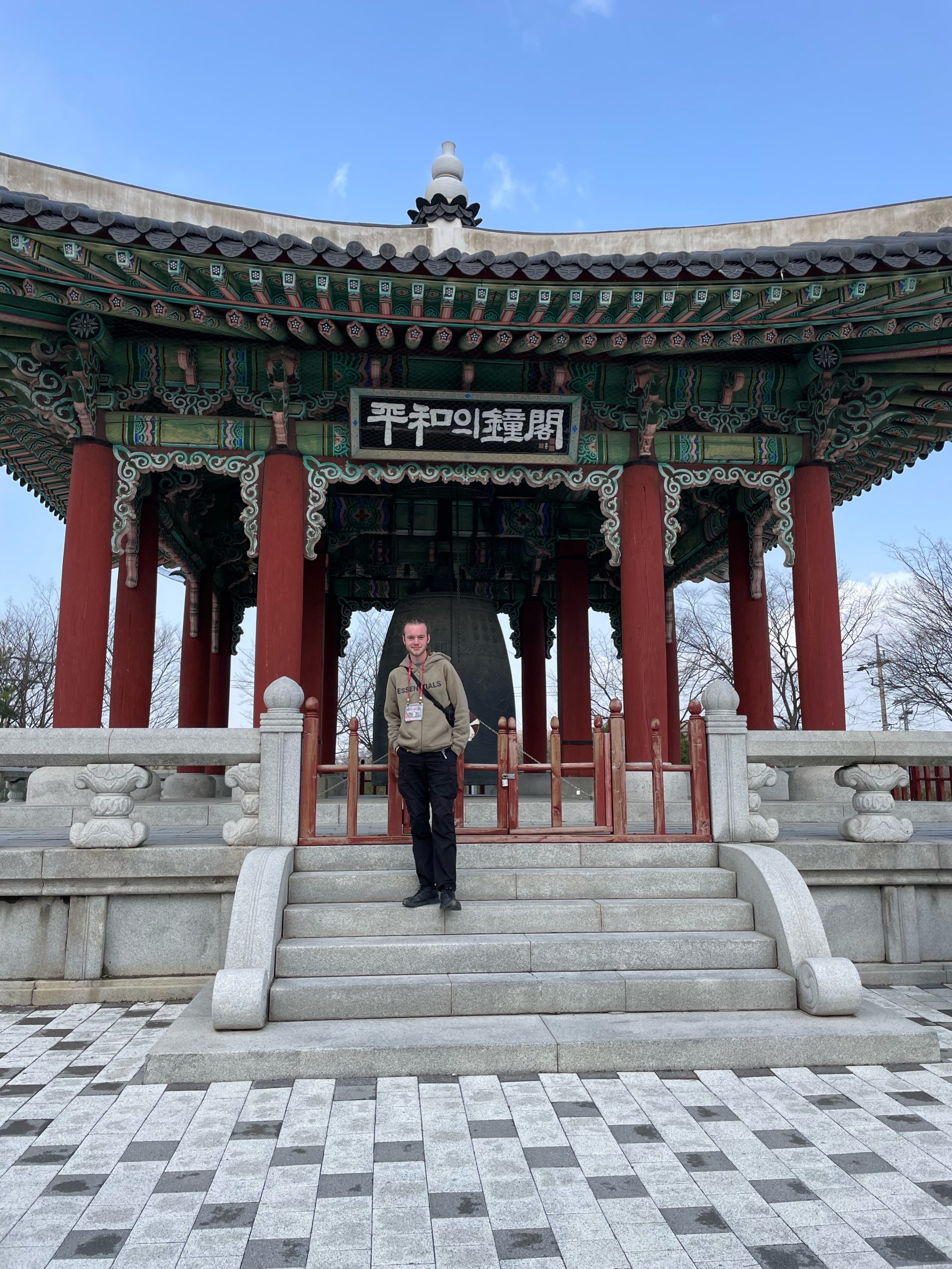 Neben der Lokomotive haben wir diese große, kunstvolle Glocke auf einem Tempel-ähnlichen Podest gesehen. Die „Friedensglocke“ besteht aus Metall, das von allen Staaten gespendet wurde, die Südkorea im Krieg unterstützt haben. Diese Glocke soll man bis nach Nordkorea hören und sie „ruft“ so nach der Einigkeit der beiden Staaten. Ein letztes interessantes Bauwerk, was uns unser Guide erklärt hat, war die Freedom Bridge. Auf dieser Brücke, die extra zu diesem Zweck gebaut werden musste, wurden nach dem Koreakrieg mehrmals Gefangene der beiden Seiten ausgetauscht. Für viele Kriegsgefangene war der Weg über die 83 Meter lange Brücke der Weg zurück in ihre vermisste Heimat und hat deshalb eine große historische Bedeutung.