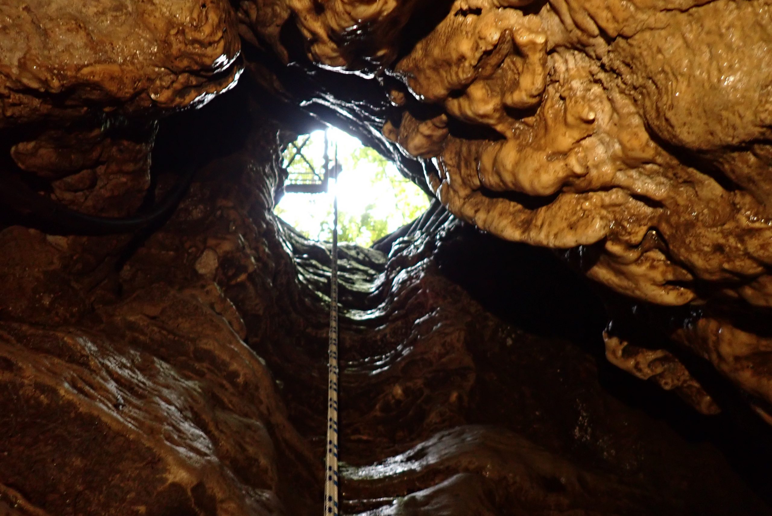 Der Anfang war überhaupt kein Problem. Man konnte ein Gefühl für das Abseilen bekommen und sich mit dem Seil anfreunden. Als ich dann bei der Hälfte des Weges, dem Engpass, angekommen war, wurde das Abseilen noch ein Stück herausfordernder. Das Loch war wie gesagt gerade so groß genug um durchzukommen. Zwar gab es keine Chance steckenzubleiben, aber man musste schon koordinieren, sich zeitgleich nicht aus Versehen fallen zu lassen und mit den Beinen den Weg durch das Loch ausfindig zu machen. Nach ein paar Drehungen und etwas versuchen hat aber auch das funktioniert und die Abfahrt ging schnell weiter. Vom Boden konnte ich nach dem Engpass den zweiten Guide hören, die mir gesagt hat wie weit es noch ist. Nach geschätzten zehn weiteren Metern haben meine Füße endlich wieder den Boden erreicht und ich konnte vom Seil abgenommen werden. Ich war vorher noch nie Abseilen und wusste nicht, dass diese Technik so einfach ist und man sie innerhalb von wenigen Minuten lernen kann! Natürlich waren wir nie mit dem Seil alleine, aber im Endeffekt schon größtenteils auf uns gestellt.