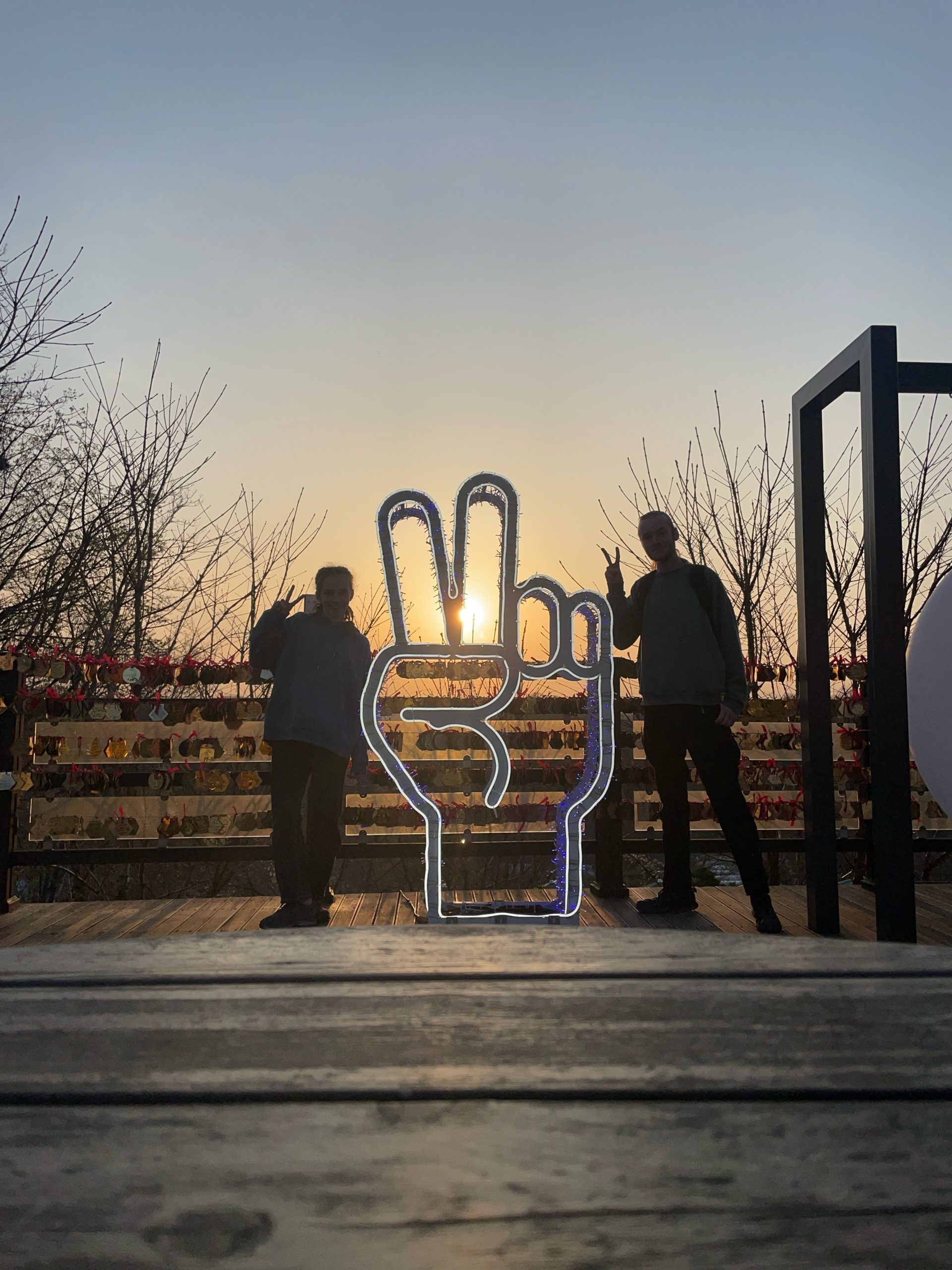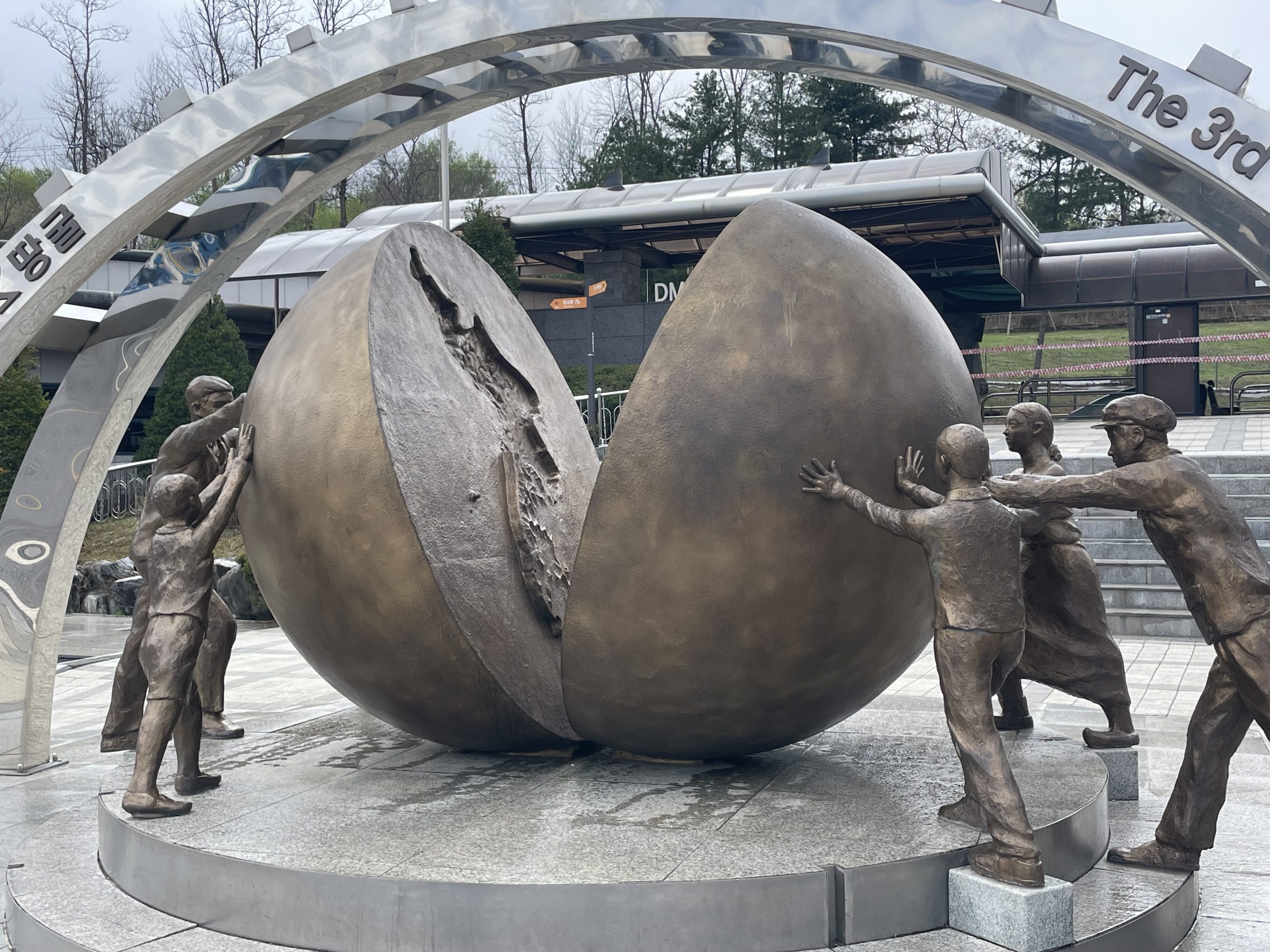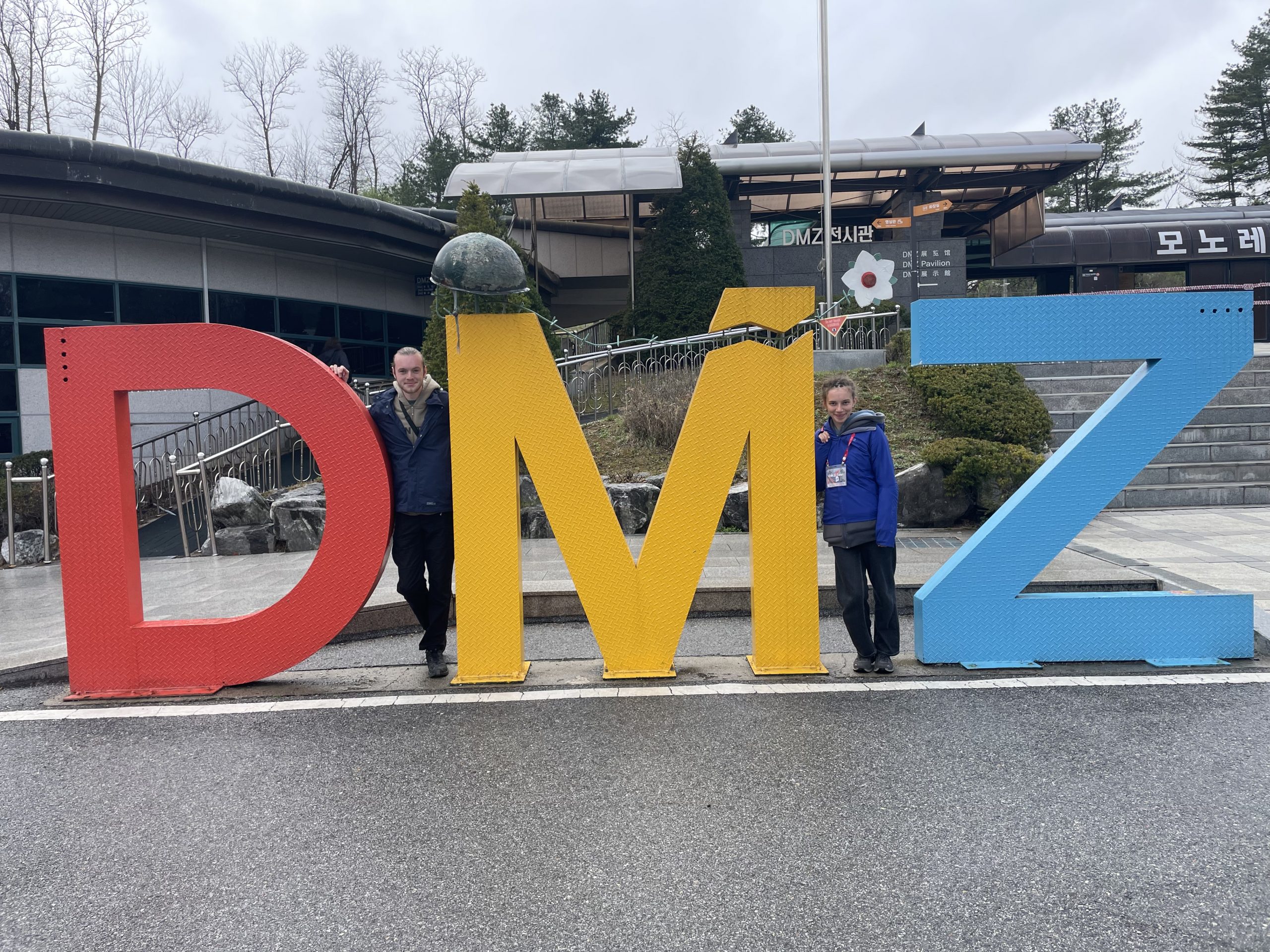 Fotos aus Südkorea Angekommen in Südkorea! Aussicht von einem Vulkanhügel Da fliegen sogar die Dreadlocks… Fliegende Haare Oben auf dem Mount Hallasan! Aussicht von einem Wegpunkt beim Wandern Auf Wolkenhöhe… Essenstand auf dem Markt in Jeju Sieht lecker aus, ist ja auch kein Seafood! Sehr große Flammen aus dem Gasbrenner… Keine Orange – eine Hallabong! Ein leerer Park in der Innenstadt Innenstadt von Seoul Flieg, Beeke, flieg! Seoul bei Nacht Selbstgemachtes Tteobokki! Tempel Traditionelle Kleidung auf dem Tempelgelände Große Tempelanlage mitten in Seoul Lichtinstallationen in der Mine In der alten Mine in Seoul Mein Schatz… Peace! Kunst an der alten Mine. Panzer auf dem Außengelände des War Museum Flugzeuge, aufgehangen im War Museum Friedensglocke an der DMZ Lokomotive auf den Gleisen nach Nordkorea Wind auf der Hängebrücke Hängebrücke auf der DMZ-Tour DMZ-Tour Mahnmal zur Einigung Koreas Ausblick auf die DMZ und Nordkorea Nordkorea-Fahne in der DMZ