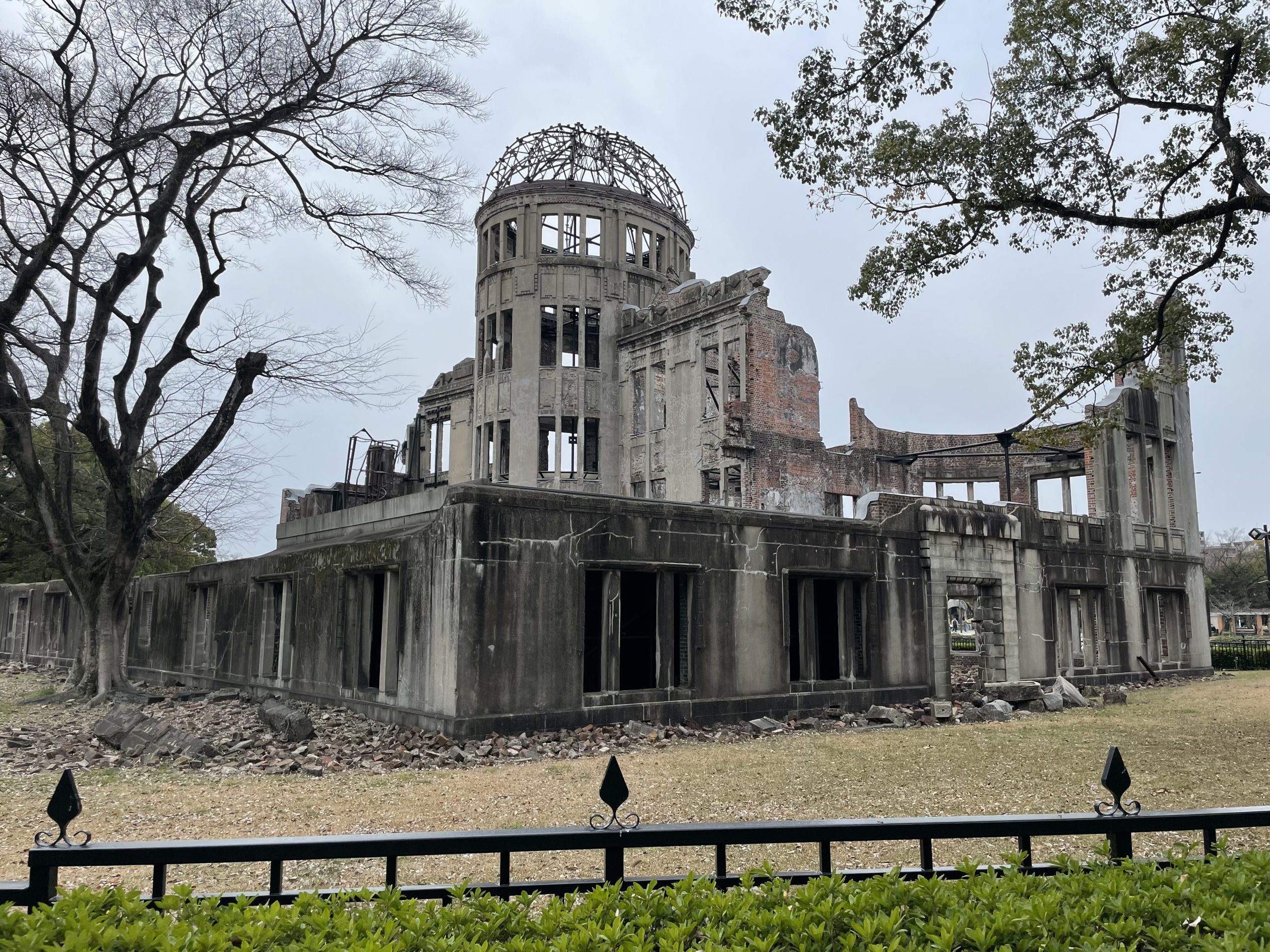 Nachdem wir das wunderschöne Gebäude nochmal ein paar Minuten bewundert hatten ging es für uns weiter zum Peace Memorial Park. Dieser befindet sich dort, wo das Epizentrum der Explosion der Atombombe war. Im Park selbst stehen viele Denkmäler und der „Atomic Bomb Dome“. Das Epizentrum war keine 200 Meter von der Ausstellungshalle entfernt und trotzdem haben Teile des Gebäudes die Explosion überstanden – als einzige Struktur in der ganzen Umgebung. Deswegen ist es heute ein Mahnmal für Frieden.