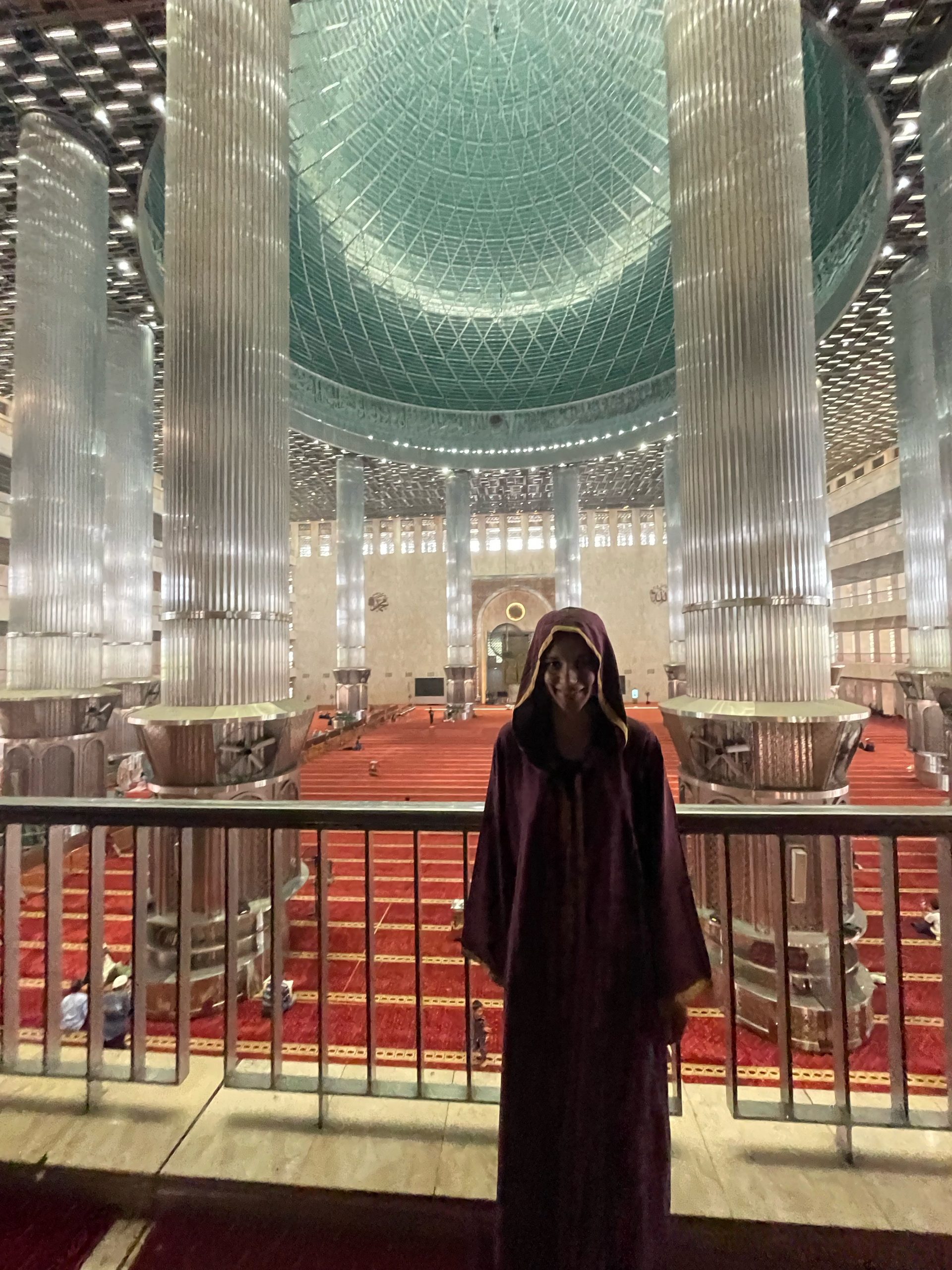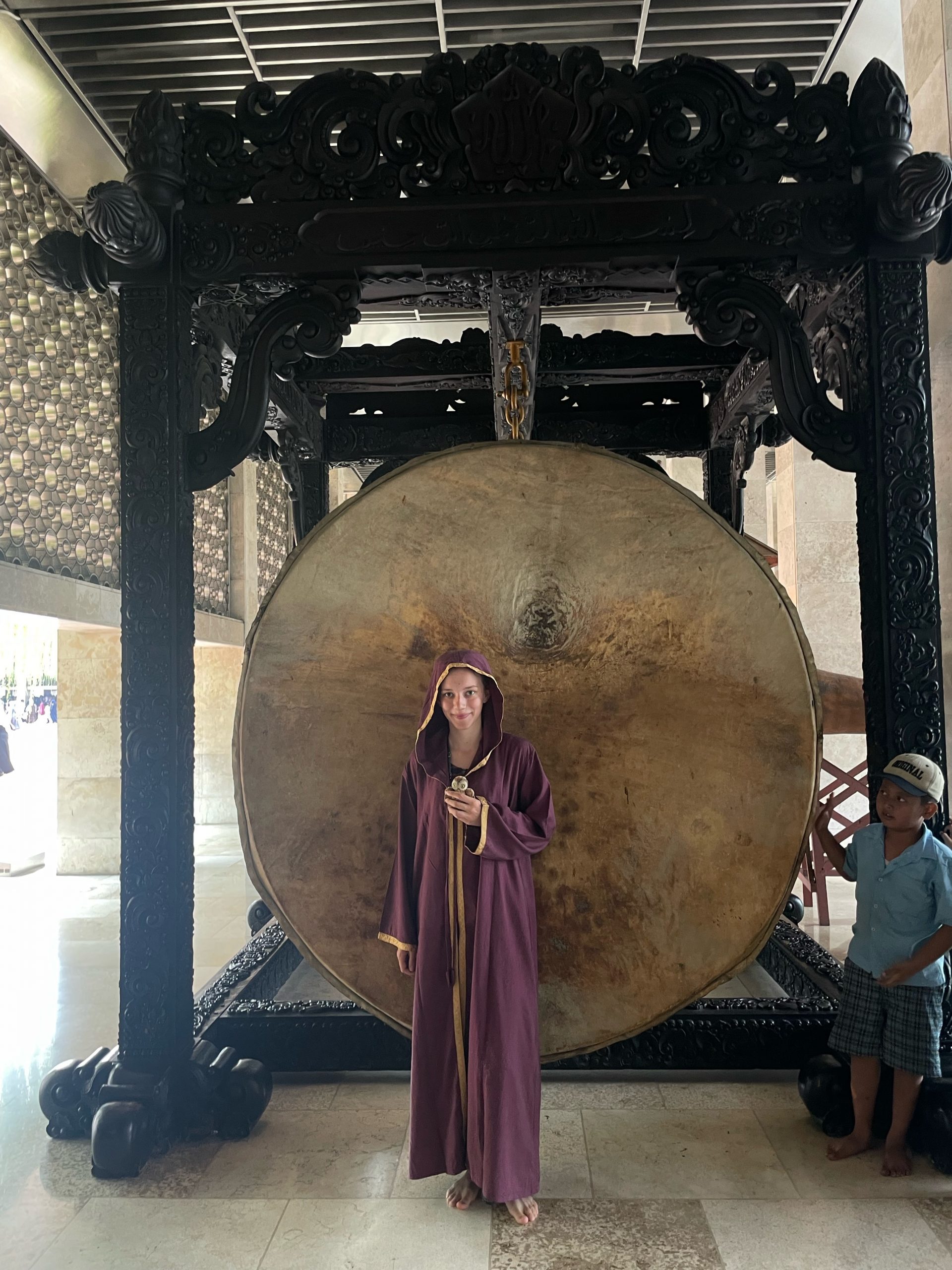Diese Mentalität sollte sich jedoch auch noch in der weiteren Zeit durchziehen, selbst in den nicht ganz so armen Gegenden der Stadt. An einem Tag haben wir uns beispielsweise die größte Moschee Südostasiens angeguckt. Sie ist auch die drittgrößte Moschee der Welt und kann bis zu zwei Millionen Menschen Platz bieten! Die Moschee durften wir unter einer kleinen Führung sogar persönlich betreten und von einem Balkon aus in die große Halle hineingucken. Auch wenn sie in der Mitte eine Unterteilung hatte, um Männer und Frauen beim Beten zu trennen, war sie unglaublich riesig, auf einem Niveau, das man fast gar nicht verstehen konnte. Ich habe ja auch die Moschee in Casablanca besucht und auch wenn diese zwar höher war und von einem Dach profitiert, das man öffnen kann, war der Innenraum vom Gefühl noch einmal ein ganz anderer. Es hat auch noch einmal geholfen, das wohl aktuell eine Ausstellung in der Moschee ist, zu welcher ein sehr sehr alter Koran aus Saudi-Arabien eingeflogen und ausgestellt wurde. Das hieß, dass zigtausende Gläubige durch die Tore der Moschee geströmt sind um das Buch mit eigenen Augen zu sehen. Es war wirklich beeindruckend, wie viele Menschen so ein Schriftstück anziehen kann.