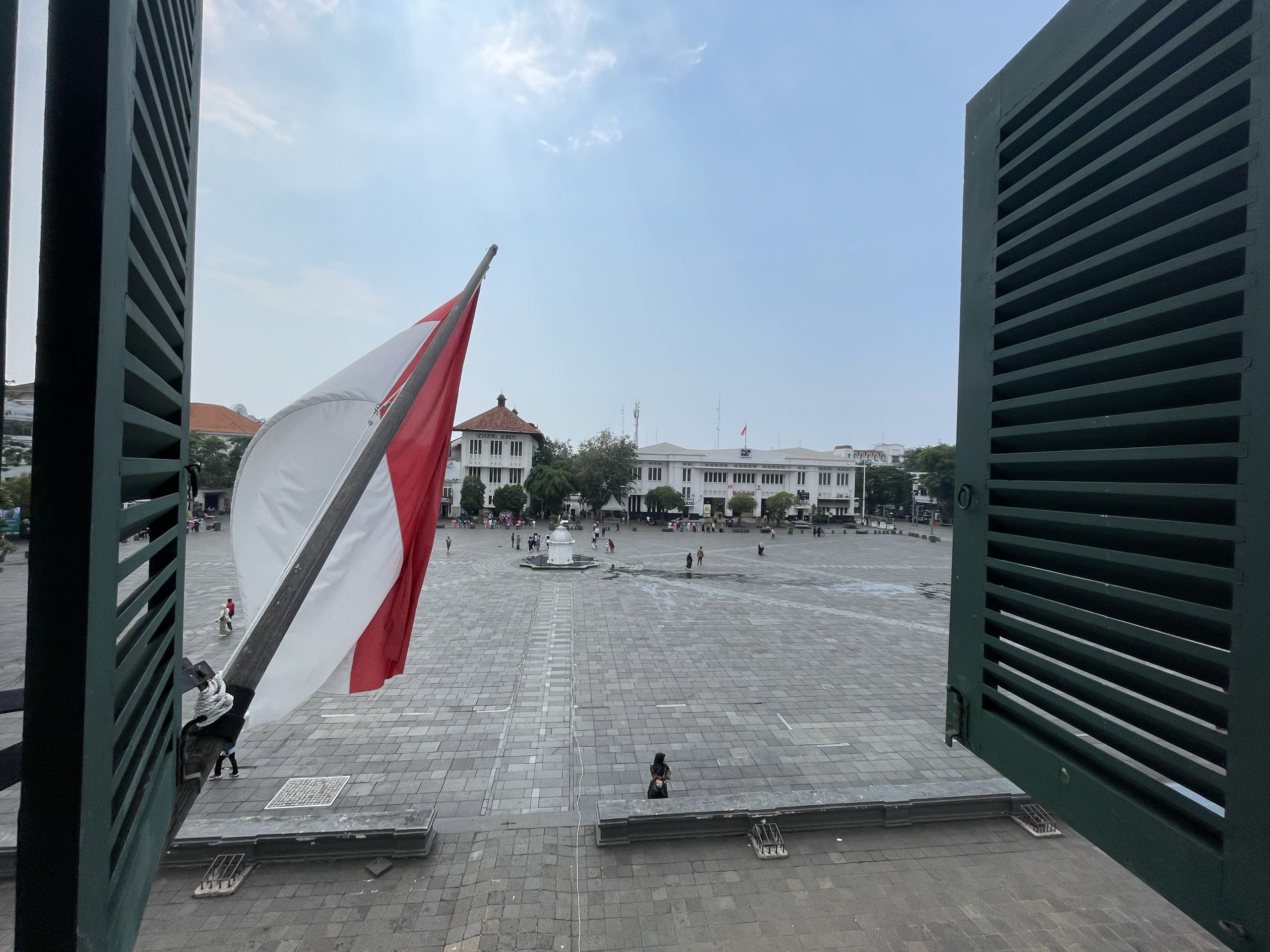 Eins der spannenderen Dinge, die wie noch besucht haben, war das Unabhängigkeitsdenkmal in der Stadtmitte. Mit einer Höhe von 137m bietet sich von hier aus eine gan besondere Aussicht auf die Stadt, die wir auch sehr genossen haben. Mal aus dem Verkehrslärm und dem ganzen Smog rauszukommen war gar nicht so schlecht. Außerdem haben wir dabei noch etwas gelernt, denn dieses Denkmal steht nämlich für die unglaubliche Geschichte Indonesiens und wurde dem Land von einer der Kolonialmächte geschenkt, die zwischendurch Teil des vielen Kriegs hier waren: Den Niederlanden. Indonesien war auch schon von so einigen anderen Mächten besetzt, als letztes sogar von Japan, aber die niederländische Kultur ist die, die am ehesten geblieben ist. Abgesehen von dem großen Denkmal und dem dazugehörigen Museum gibt es auch noch viele typisch niederländische Häuser und sogar ganze Viertel. Einmal haben wir die alte Stadtmitte besucht, die im originalen Handelskontor gebaut wurde. Dort werden sogar die klischeehaften Fahrräder vermietet, damit man in Klein-Niederlande eine Runde drehen kann.
