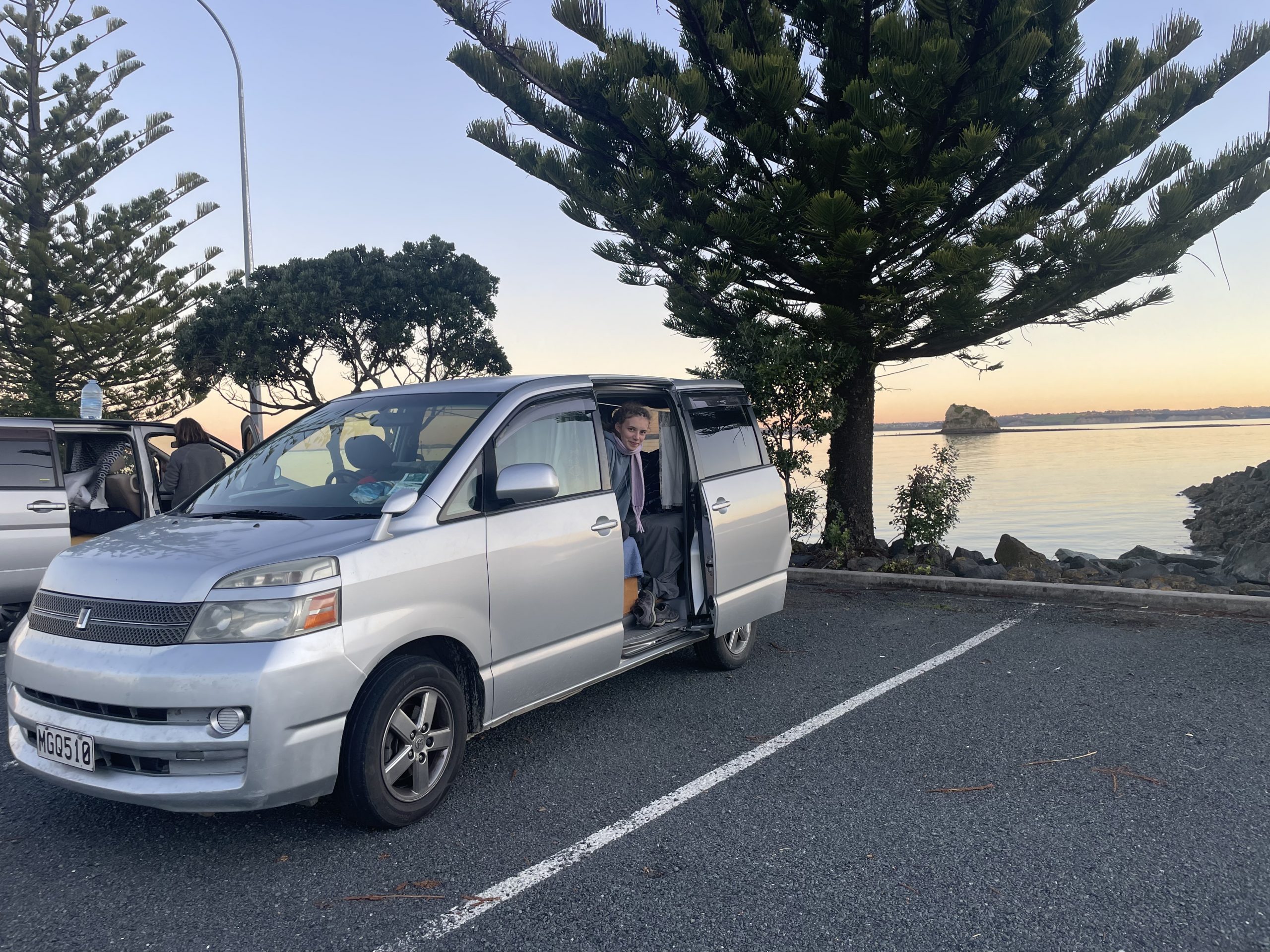 Mit dem Autokauf ging es für uns noch am gleichen Tag aus der Stadt Auckland raus. Jedenfalls einigermaßen. Das Treffen mit dem Käufer war um neun Uhr morgens und wir haben in der Nacht davor vielleicht etwas zu lange Karten gespielt. Wir wollten die letzten Stunden zu viert voll und ganz nutzen uns sind noch morgens zum Sonnenaufgang ans Wasser gegangen und erst um 08:30 schlafen gegangen.