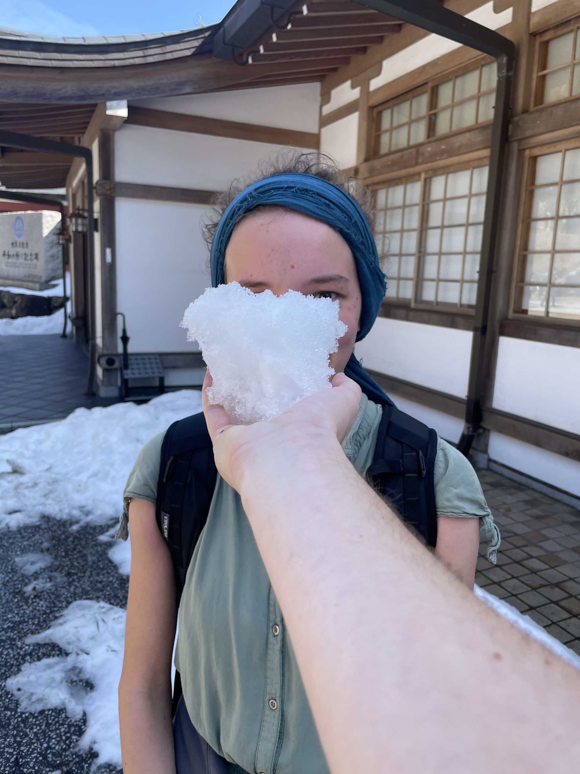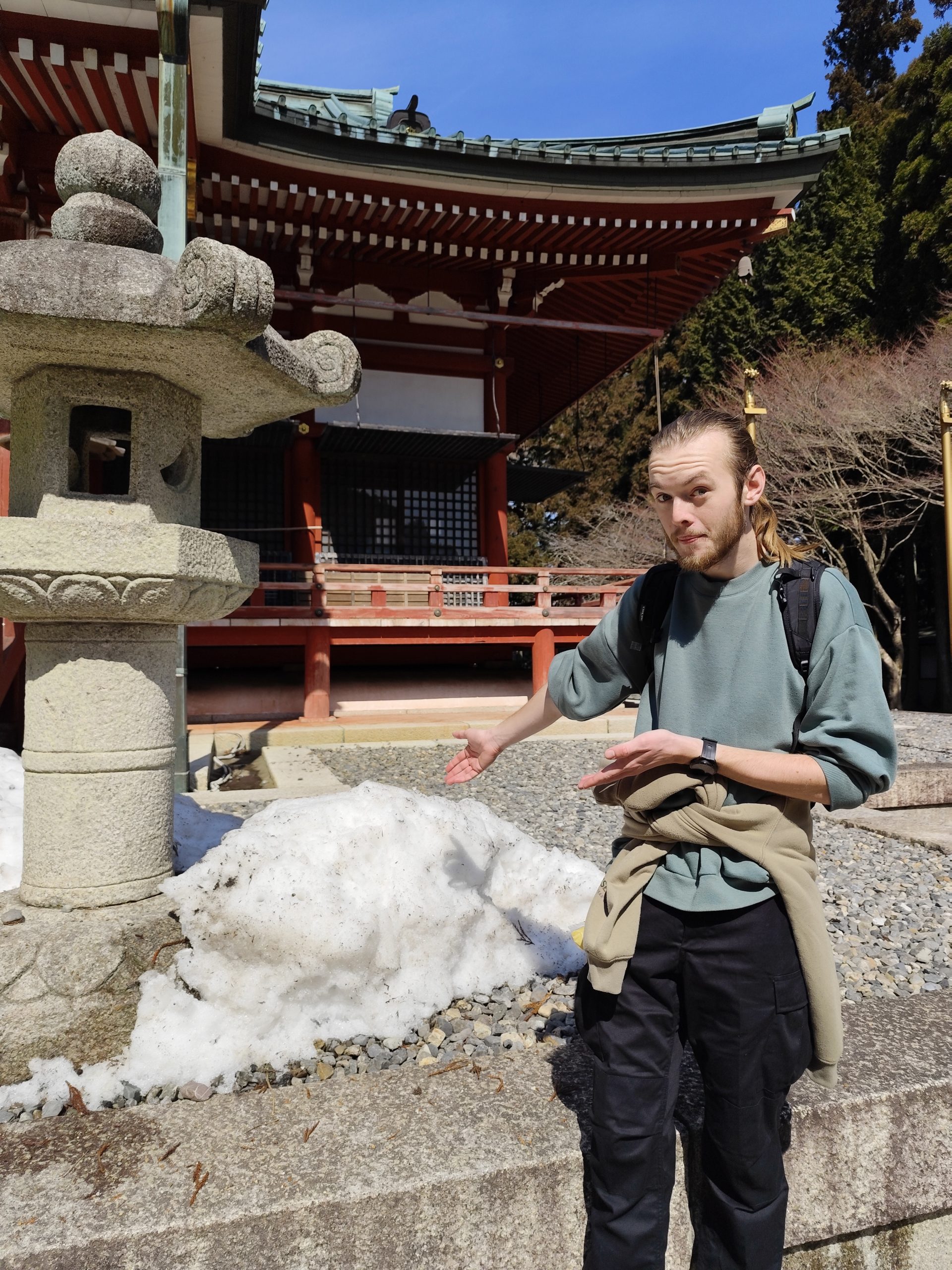 Kurz vor der Spitze des Berges sind wir auf eine große Tempelanlage gestoßen. Dort oben lag sogar Schnee, damit hatten wir beide vorher auch nicht gerechnet. Zu diesen Tempeln hatte man auch mit dem Auto Zugang, deshalb war es dort deutlich voller als auf dem Wanderweg (wo wir fast alleine waren).