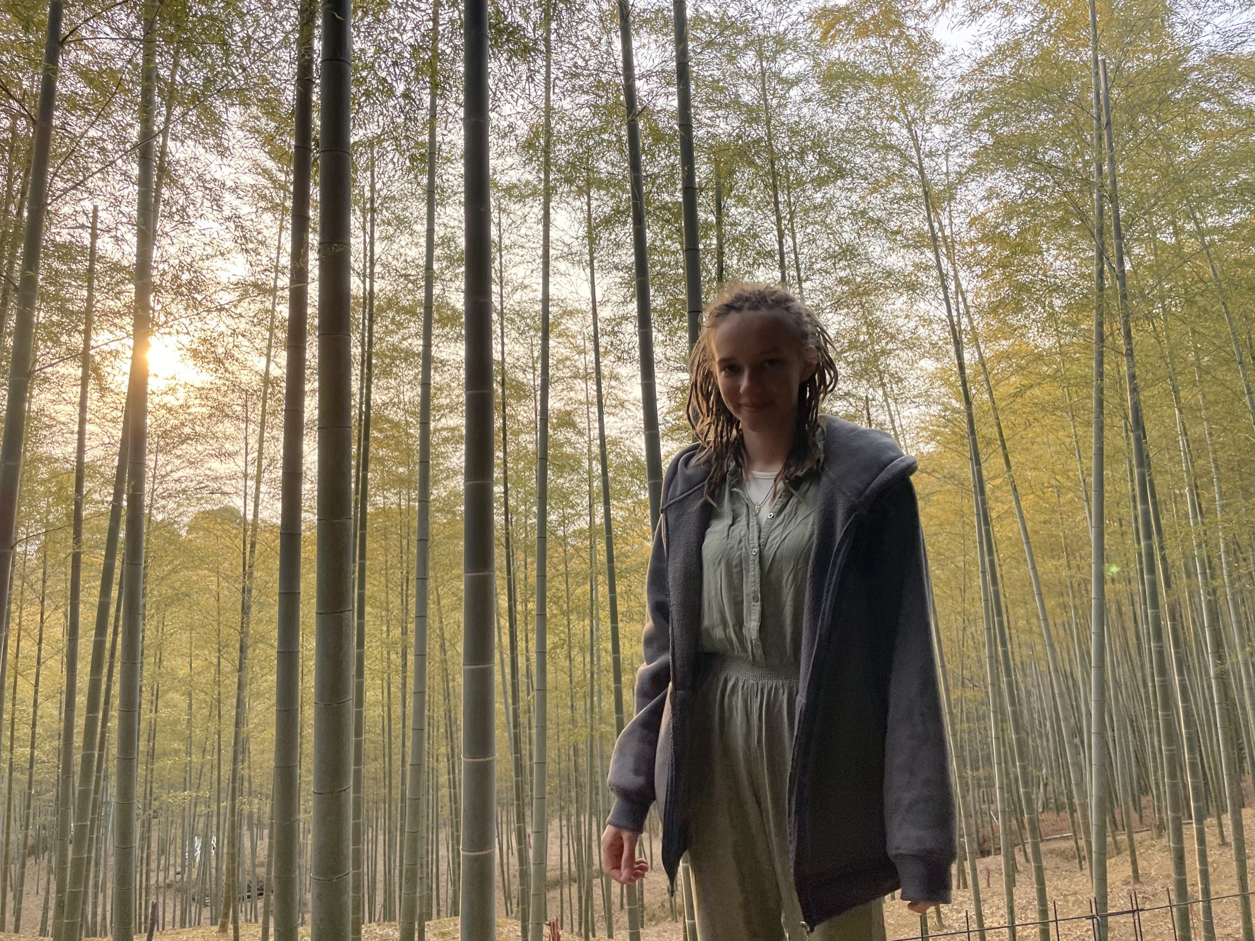 Als wir am nächsten Tag etwas um einen Tempel herumgewandert sind, haben wir durch Zufall noch einen Bambuswald gefunden, nur diesmal ohne die Touristen! Es sieht so aus, als würde der Bambus hier tatsächlich angebaut und genutzt werden, anstatt nur als Touristenattraktion zu stehen und so sah der Wald fast noch etwas schöner aus: