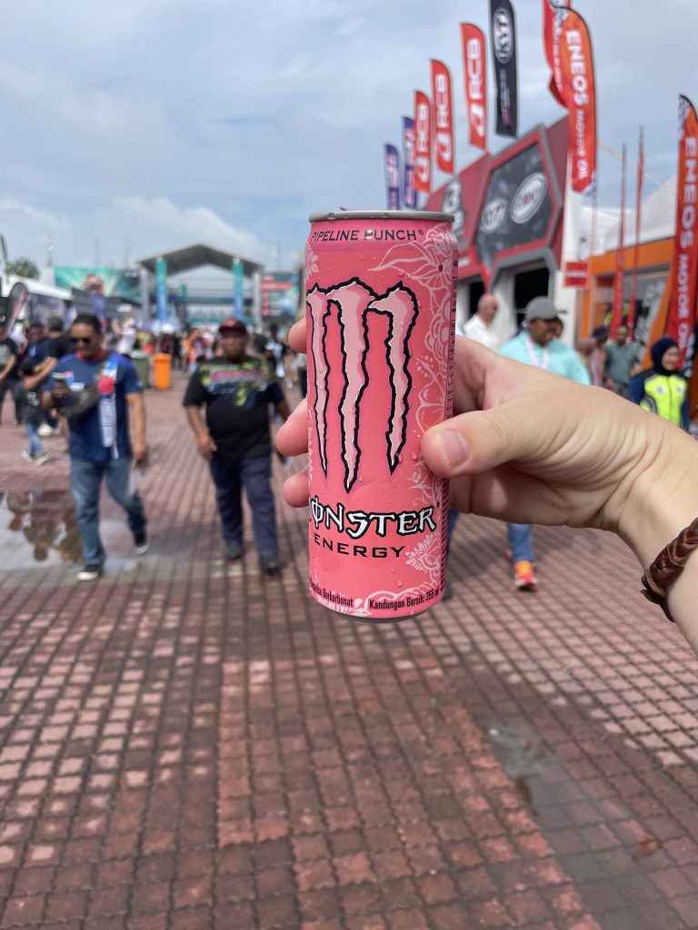 Direkt hinter dem großem Haupteingang wurden wir von etlichen Werbezelten begrüßt. Alle davon hatten in irgendeiner Form mit dem Rennen zu tun, seien es Motorradfirmen (Ducati, Yamaha, …), Reifen- oder Ölhersteller(Michelin, ÖL??, …) oder Getränkemarken (Red Bull, Monster Energy, …) die als Sponsoren dabei waren. Ausgestellt in den jeweiligen Zelten waren dabei zum Beispiel etliche Motorräder, Werbeautos, Simulatoren, Uhren oder Kameras. Im Laufe des Tages haben wir natürlich den Großteil der Zelte besucht, teilweise aus Interesse, teilweise um den Schatten und die kühle Luft zu genießen. Bei Monster Energy bekamen wir gleich zwei Mal jeweils kostenfreie Getränke, was für uns natürlich großartig war.