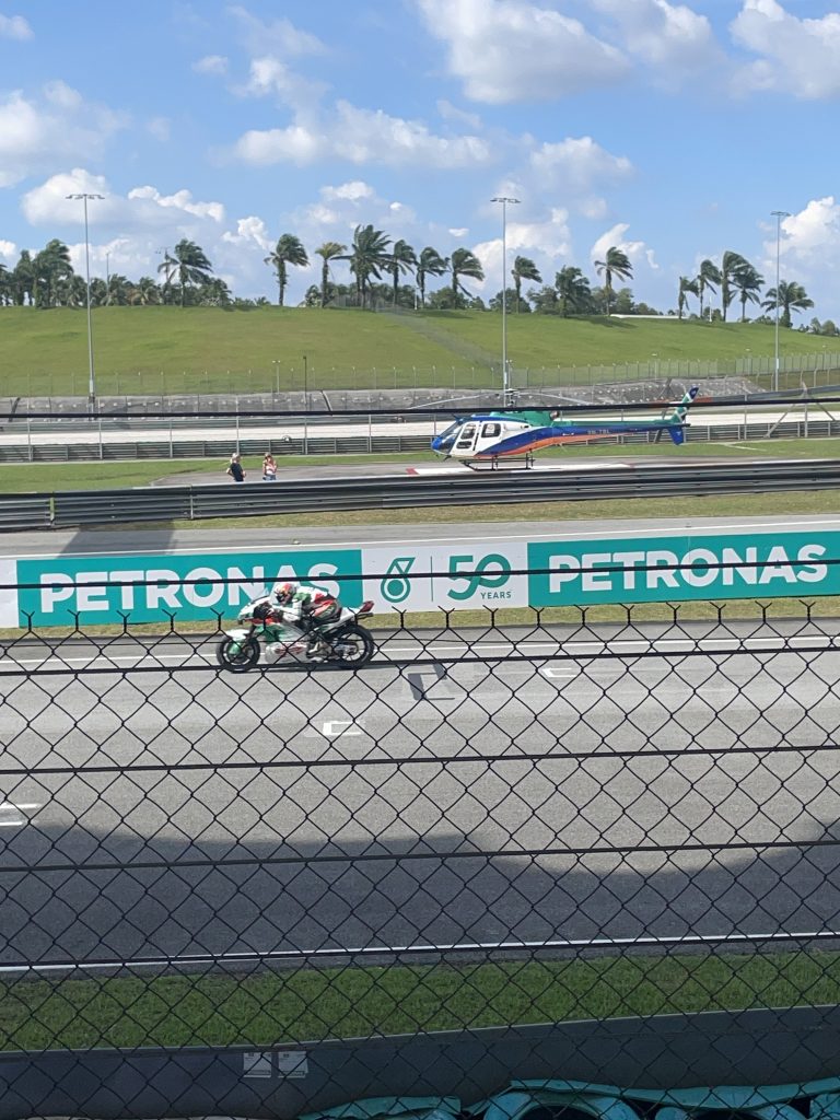 War es schon so weit. Wieder fuhr ich morgens alleine zum Track, diesmal leider ohne Ian. Denn am Renntag, auf den die Fahrer jetzt schon seit zwei Tagen hin trainierten, waren die Tribünen voll. Und leider waren es nicht nur die Tribünen, sondern auch die Straßen. Meine Busfahrten dauerten beide jeweils doppelt so lang wie an den Tagen zuvor, was bei einer normalen Fahrt über einer Stunde Dauer leider schon einen Unterschied gemacht hat. Somit hatte ich keine Chance, Ian wiederzutreffen und verbrachte den Vormittag diesmal alleine. Und auch wenn die Rennen selbst hier eigentlich am spannendsten gewesen sein hätten sollen, war ich schon gar nicht mal mehr so beeindruckt. Wahrscheinlich liegt das daran, dass ich mich vorher kaum über die Fahrer informiert habe und durch Ian zwar wusste, wer wie viele Punkte hat und wer den Sieg denn verdienen würde und wer nicht, aber im Endeffekt hatte ich keine Ahnung, wer dort wirklich auf den Motorrädern war. Trotzdem habe ich natürlich mit den anderen Fans um mich herum mitgefeiert, bei allem was passiert ist. Vor allem der Kamera-Helikopter, der den ganzen Tag über der Strecke seine Runden gedreht hat, fand ich absolut beeindruckend, aber auch die Fahrer tatsächlich nochmal in Topform zu sehen war schon cool. Innerhalb der drei Rennen, die an dem Tag stattfunden, wurde unter anderem eine neue Rekordzeit für Motorräder am Sepang International Circuit aufgestellt. Diese liegt bei einer Minute und 56,337 Sekunden, was absolut bemerkenswert ist, aber unter uns… Ist es auch nur wenige Millisekunden schneller als der vorherige Rekord.