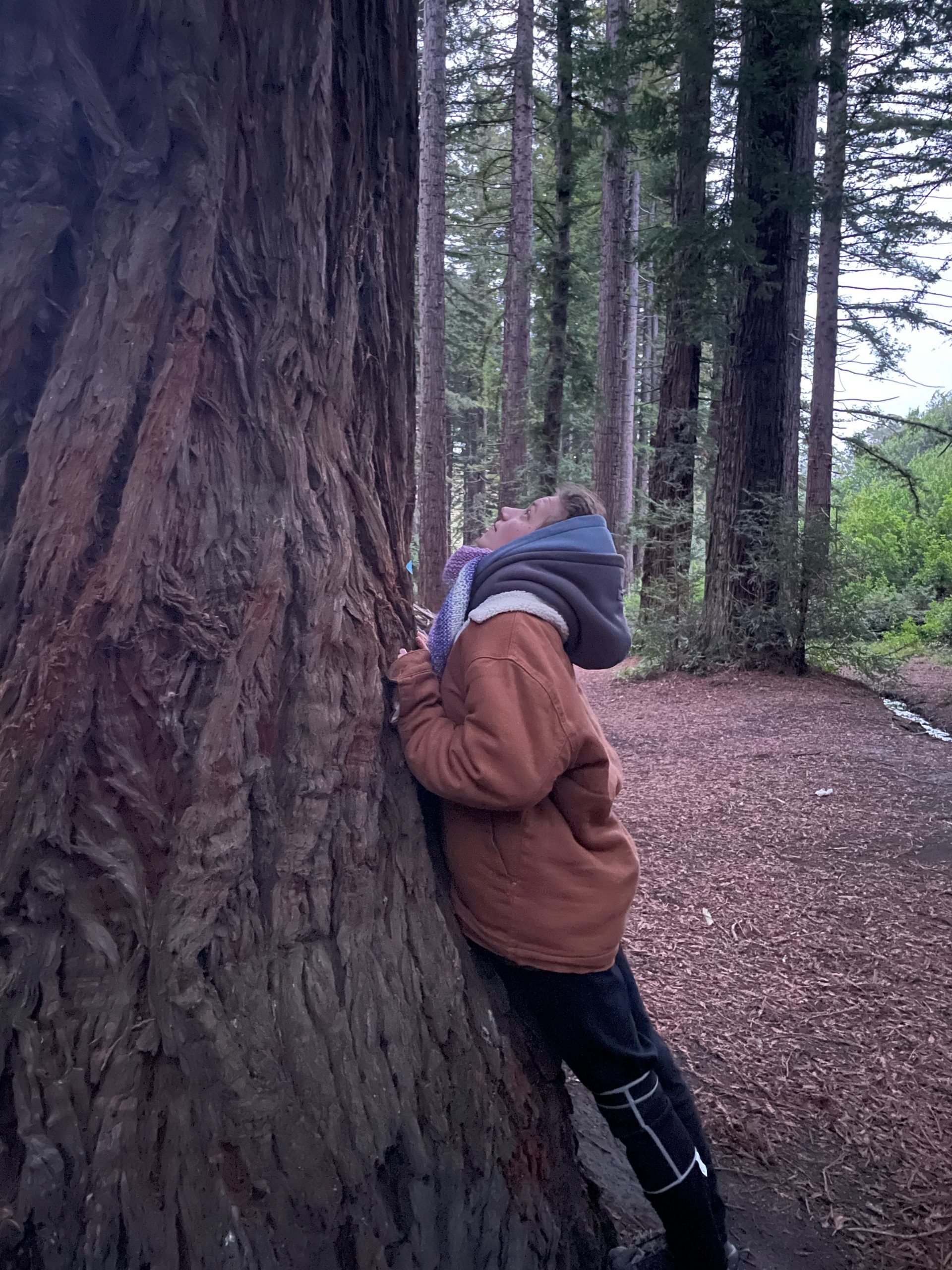 Obwohl es langsam schon etwas später wurde, haben wir uns dazu entschieden den längeren Weg zurück zum Auto zu nehmen und hatten so das Glück an den Weideflächen von Kühen und Schafen vorbei zu kommen! Wir konnten uns dort nur leider nicht zu viel Zeit lassen, weil die Dunkelheit uns im Nacken saß. Deshalb war es dann schon am Dämmern, als wir bei den „Giant Redwoods“ angekommen sind. Wir haben erst im Nachhinein herausgefunden, dass es sich bei den majestätischen Bäumen um Mammutbäume handelte! Das erklärt allerdings ihre Größe von bis zu 40 Metern, die sie trotz ihres geringen Alters von „nur“ etwa 100 Jahren haben. Für ihr Pflanzungs-Jubiläum waren wir leider zwei Jahre zu früh, denn das ist erst in 2027. Im Jahr 1927 wurden dort die ersten Bäume gepflanzt, die 50 Jahre noch durch neue Mammutbäume ergänzt wurden. Aber auch mit 98 Jahren waren die Bäume schon sehr beeindruckend, wie sie im Halbdunkeln Dutzende Meter in den Himmel ragten. Ich wünsche ihnen (und natürlich auch den etwas jüngeren Nachfolgern) noch viele weitere Jahrhunderte. Vielleicht besuchen wir sie ja sogar nochmal!