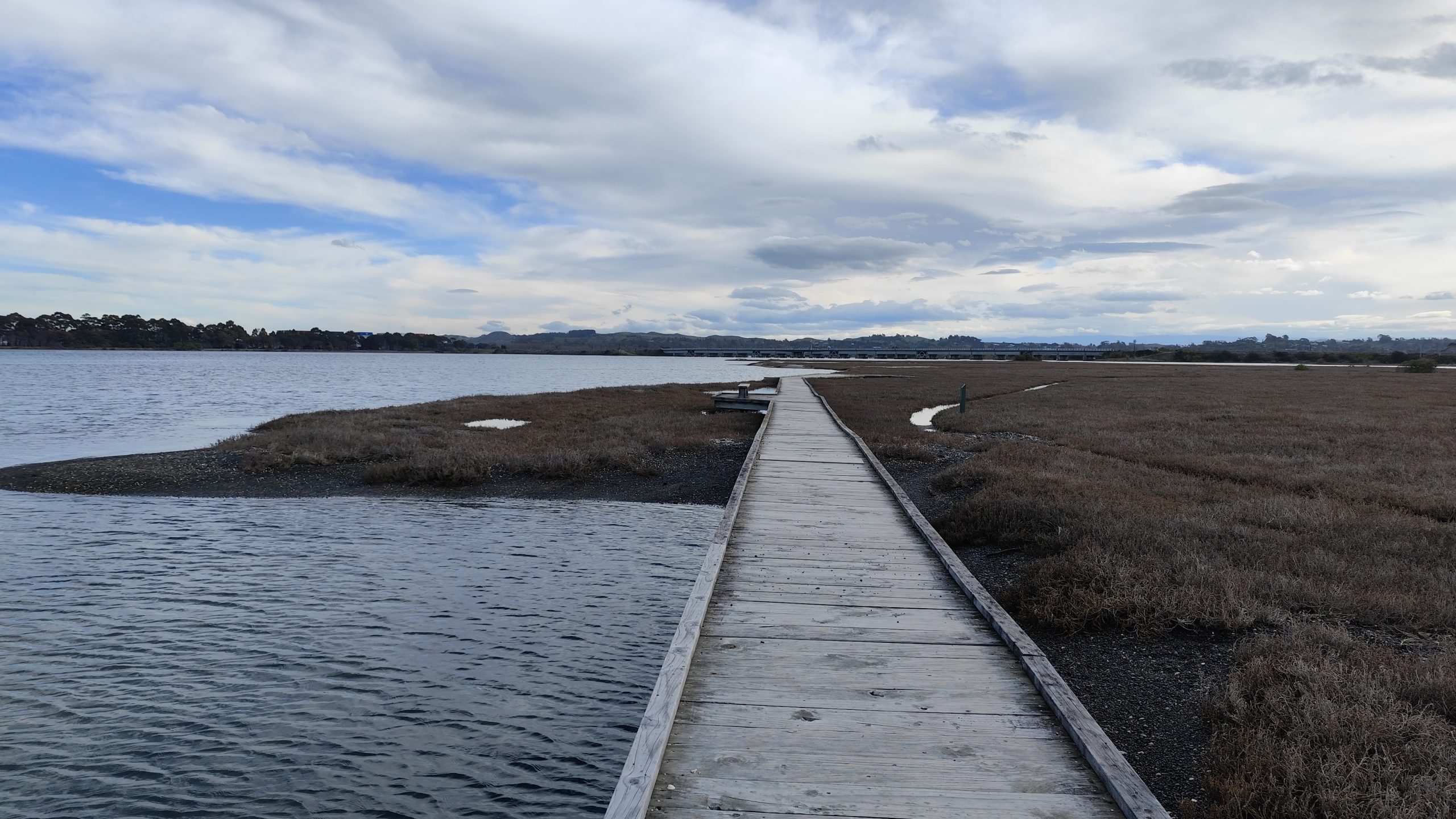 An einem der ersten Abende haben wir einen sehr hübschen kleinen Holzsteg gefunden, der ein ganzes Stück über das Ufer des Meeres und durch Schilffarne führt. Natürlich haben wir in den letzten Monaten deutlich atemberaubendere Landschaften gesehen, aber ich freue mich trotzdem immer, wenn wir solche kleinen Wege finden. Dort zum ersten Mal spazieren zu gehen, wo die meisten anderen vermutlich täglich mit ihren Hunden lang laufen, kann sich (gerade auf den schöneren Wegen) sehr intim und auch etwas zugehörig anfühlen, selbst wenn der Weg selbst wohl nicht in meine Top 10 Erfahrung in Neuseeland kommen wird.