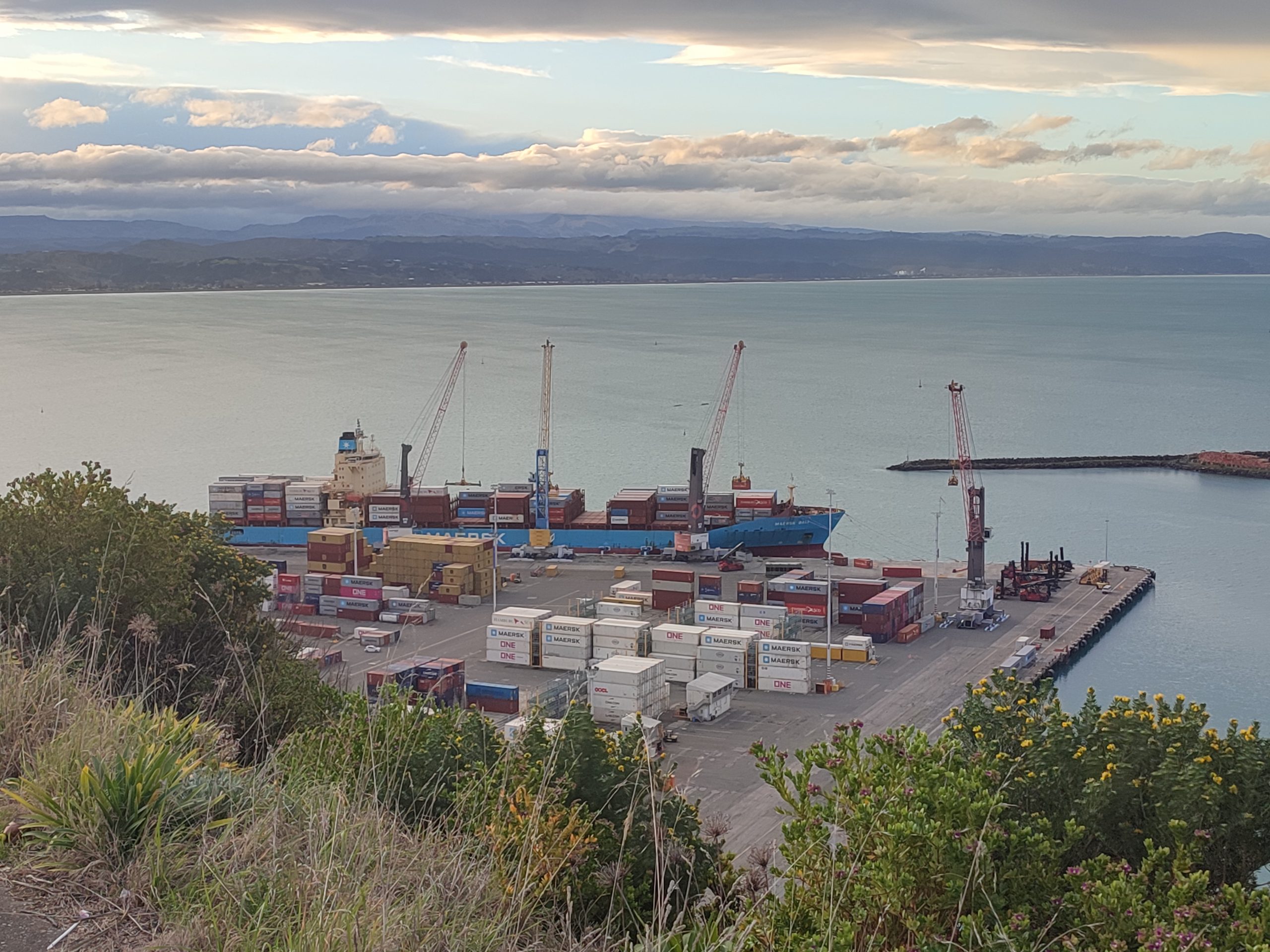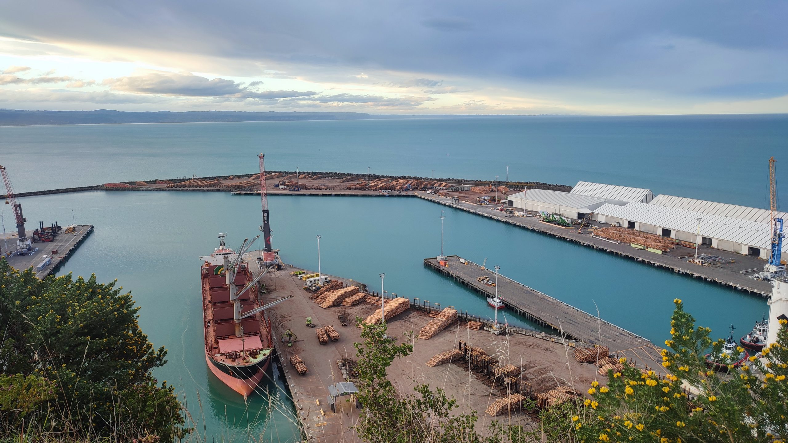 An einem anderen Nachmittag hat Thies auf Google Maps einen Aussichtspunkt entdeckt, der sich auf dem einzigen sichtbaren Hügel der sonst recht flachen Stadt befand. Kurzentschlossen sind wir hoch gefahren, das ging mit dem Auto zum Glück trotz der engen Kurven und steilen Straßen ziemlich gut. Oben angekommen war uns direkt klar, dass wir mit diesem kleinen Aussichtspunkt eine großartige Entdeckung gemacht hatten. Da der Hügel sich genau am Ufer des Meeres befand, konnte man von dort oben sowohl auf die wogenden Wellen und natürlich auch auf Napier selbst blicken. Am interessantesten fanden wir beide jedoch den Containerhafen, der genau unter der Plattform lag. Wir standen bestimmt eine halbe Stunde dort oben im Wind und beobachten, wie zwei Schiffe be- und entladen wurden. Der größte Teil des Hafens wurde von Stapeln riesiger Baumstämme eingenommen, die wir bisher nur auf den Anhängern von LKWs gesehen haben. Nun zu sehen, wie unfassbar viele dieser Baumstämme in den Bauch eines einzigen Schiffes passten, hat mich kurz vor die Frage gestellt, wie bald in Neuseeland keine Bäume mehr stehen würden. Zwar hatten wir schon auf der gesamten Nordinsel viele gezüchtete Wälder gesehen, aber gefühlt hat ein ganzer dieser Wälder nur in dieses einzige Schiff gepasst!