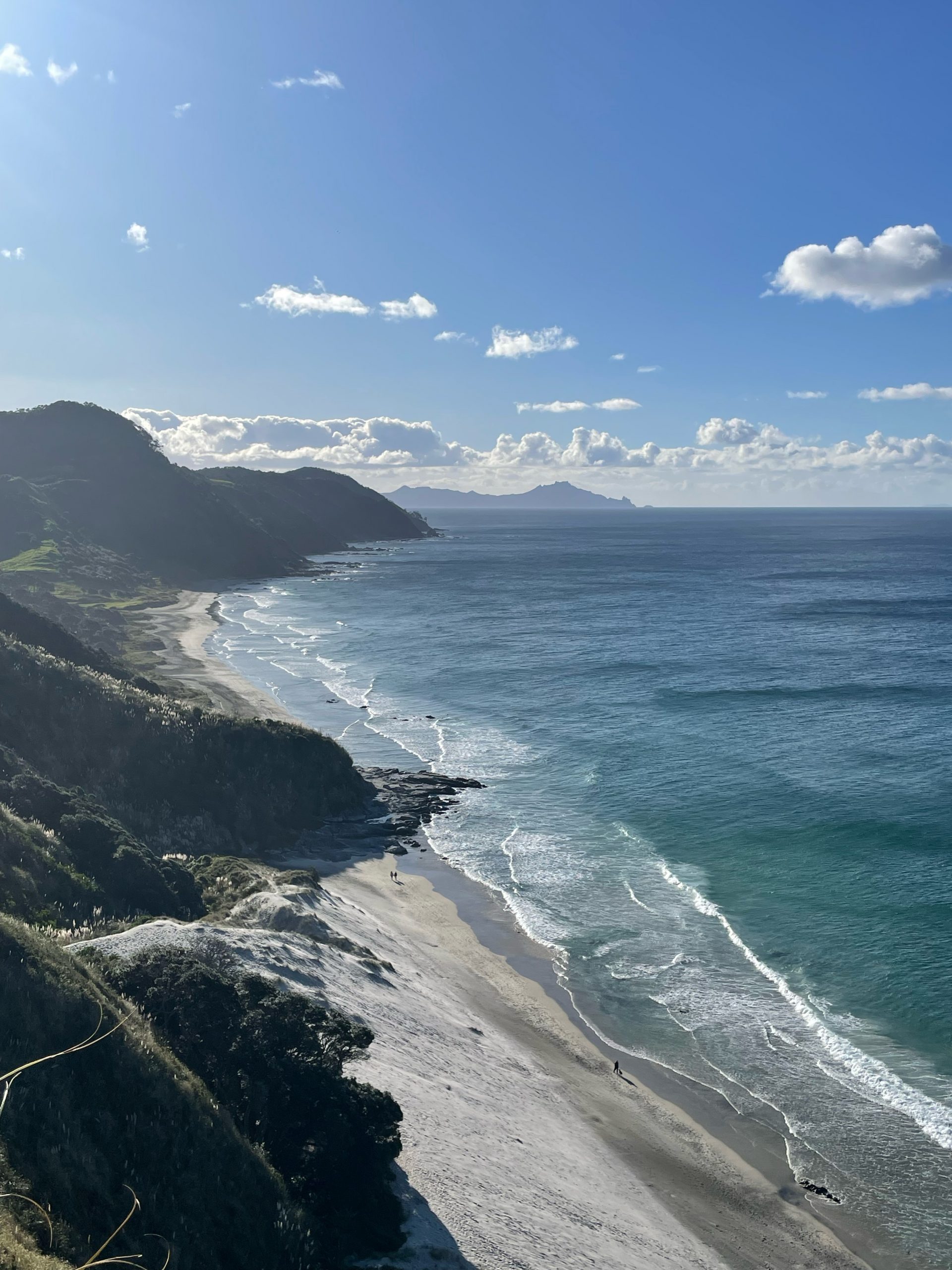 Nach vielen verliebten Blicken sind wir an dem nächsten spannenden Ort angekommen – Whangarei Heads. Hier haben wir uns einen Strand angeguckt, der wirklich traumhaft war. Wäre es nur nicht so kalt… Der Strand sieht so aus, als könnte man hier im Sommer wirklich gut baden gehen, aber aktuell ist einfach wirklich nicht so toll.