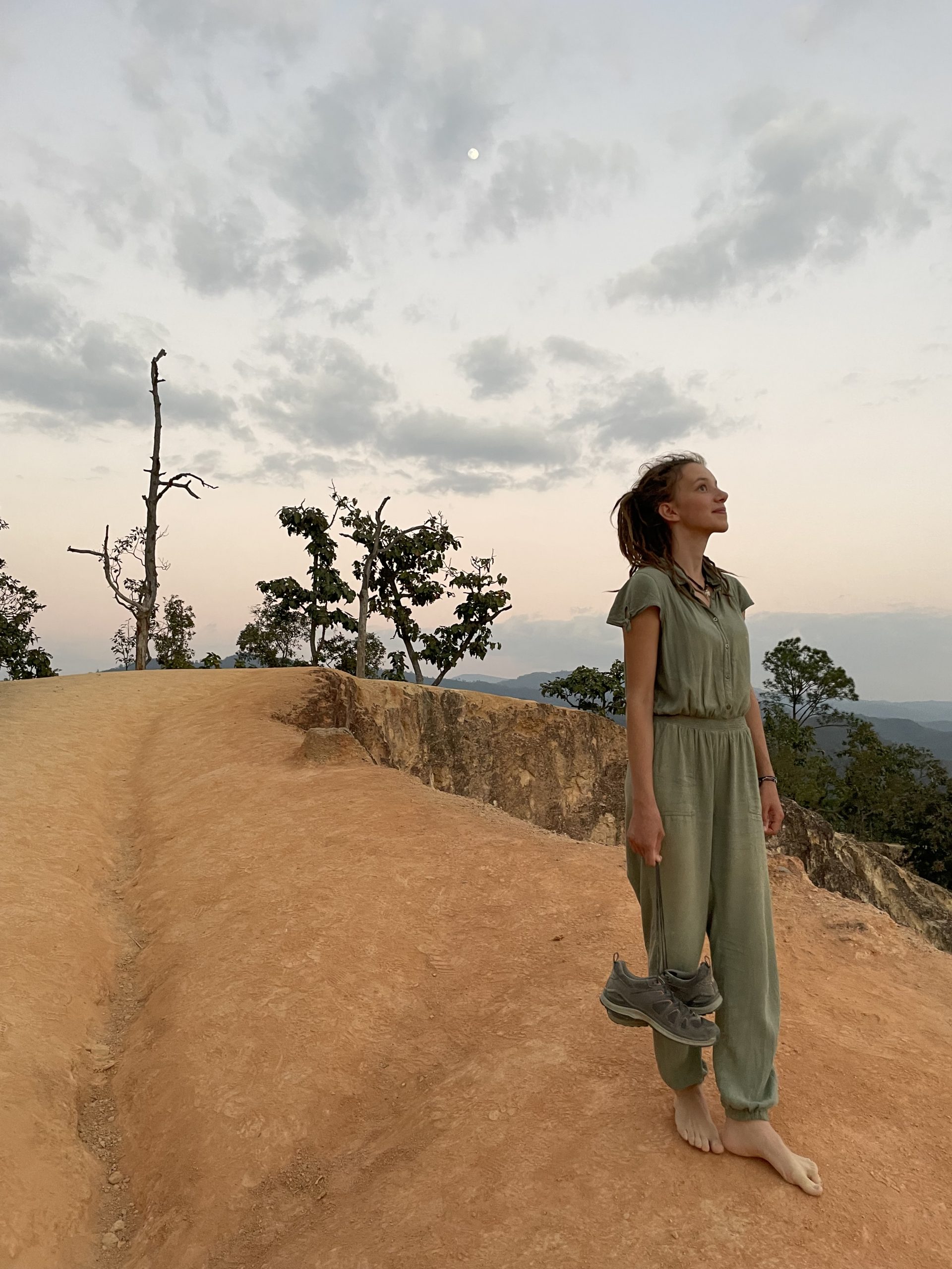 Wir haben uns im Auto kurz gestärkt, haben unsere Wasserflaschen aufgefüllt und sind dann zum Sonnenuntergang wieder auf das erste große Plateau gestiegen. Zu dieser Zeit war es dort oben deutlich voller und es gab dementsprechend auch mehr Menschen in unpassender Kleidung. Für den ersten Teil, die Treppe, sind Kleid und Flip-Flops zwar kein Problem, aber auf sandigen, schmalen Wegen mit solchen Schuhen herumlaufen? Ich hätte zu viel Angst damit auszurutschen! Wir sind noch ein Stück weiter gewandert und geklettert, bis wir einen ruhigeren Blick auf den Sonnenuntergang hatten. Zu sehen, wie die Sonne hinter den Bergen verschwindet ist schon etwas Besonderes, auch wenn ich mich in der letzten Woche fast daran gewöhnt hätte.