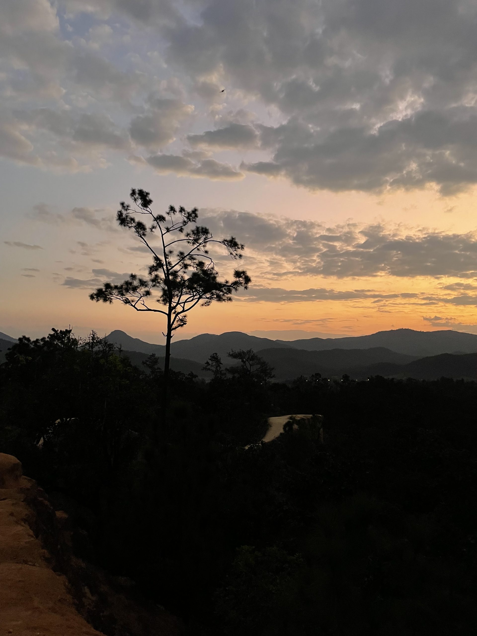 Wir sind den Tag über noch bis zum Phu Langka gefahren, das ist ein Berg 3,5 Autostunden südlich vom Golden Triangle. Als wir zu unserem Schlafplatz gefahren sind, einem Parkplatz am Rand einer nicht so befahrenen Straße, haben wir einen kleinen Schrecken bekommen. Aus der nächsten Stadt stiegen zwischen den Bäumen Funken in die Luft. Wir konnten auch mehrere Meter hohe Flammen sehen und dachten erst an einen Waldbrand. Als wir in der Stadt noch mehrere kleinere Lagerfeuer gesehen haben, waren wir beruhigt. Wir haben schon oft gesehen, dass am Wegrand etwas verbrannt wurde, allerdings waren die Feuer bisher noch nie so groß. Auf unserem Parkplatz angekommen haben wir eine Gruppe junger Männer bemerkt, die um ein kleines Feuer herumsaßen. Einer spielte etwas auf der Trommel und die anderen haben zwischendurch auch musiziert. Wir wollten sie nicht stören und darauf ansprechen, aber offenbar gab es einen festlichen Anlass für das große Feuer.
