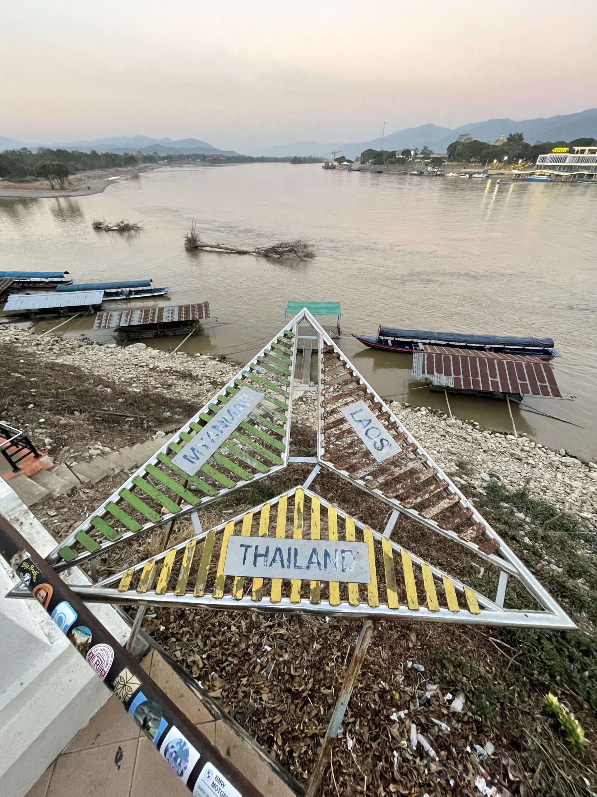 Nachdem wir das „Golden Triangle“ gestern nur bei anbrechender Dunkelheit sehen konnten, sind wir heute noch mal bei Tageslicht zu der Stelle gefahren. Wir haben nichts Neues entdecken können, aber dieser Ort wirkte auf mich sehr faszinierend. Nach Laos kommt man nur mit einem Visum und die Grenzen zu Myanmar sind komplett dicht. Trotzdem ist die räumliche Distanz der Länder an dieser Stelle so gering, dass man als guter Schwimmer einfach an die andere Seite kommt, mit einem Boot sowieso. Es gibt keine Grenzzäune oder irgendein Hindernis, was einen davon abhalten würde. Nur den Fluss selbst.