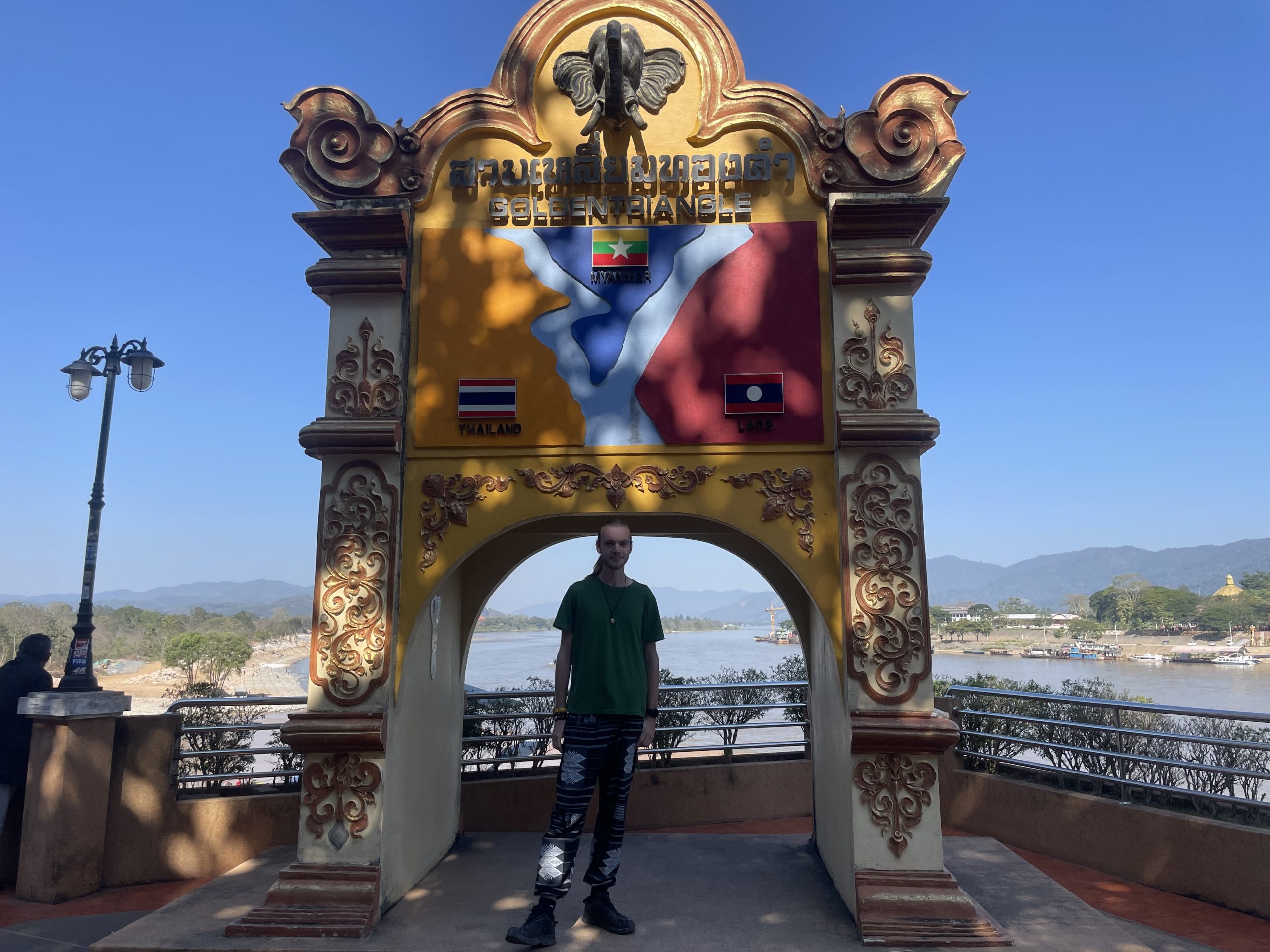 Nach dieser Erfahrung ging es für uns weiter in den Nordosten Thailands, zum „Golden Triangle“. So wird die Stelle genannt, an der Thailand, Laos und Myanmar aufeinander treffen. Die drei Länder werden dabei nur von zwei Flüssen getrennt, wobei der eine an dieser Stelle in den anderen mündet. Gerade mit den letzten Sonnenstrahlen sind wir dort angekommen und konnten einen Blick auf die beiden anderen Länder werfen. Auf Thailands Seite saß ein großer, goldener Buddha und zwei lebensgroße Elefantenstatuen. Der Bereich war sehr prunkvoll gestaltet und stark religiös geprägt. Auf laotischer Seite haben wir viele beleuchtete Wolkenkratzer mit beeindruckender Architektur gesehen. Myanmar hatte dagegen nichts von dem beiden. Es gab dort keine Städte, nur in der Ferne konnten wir ein einzelnes Haus erkennen. Der Stand bestand nicht aus einer Kaimauer, um sich gegen den hohen Wasserstand zu schützen, wie es bei Thailand und Laos der Fall war. Stattdessen waren dort viele graue Steine als Begrenzung des Ufers. Dahinter war nur brauner Boden und ein leicht vertrockneter Wald. Es gab dort nicht mal ein Schild oder eine sonstige Markierung dieses besonderen Ortes. Ich versuche nicht zu viel in den Zustand dieser Grenzregion hineinzuinterpretieren, aber dieser karge Landabschnitt passt zu dem Land, was sich seit Jahren im Bürgerkrieg befindet und auch konfliktreiche Beziehungen zu seinen Nachbarländern pflegt.