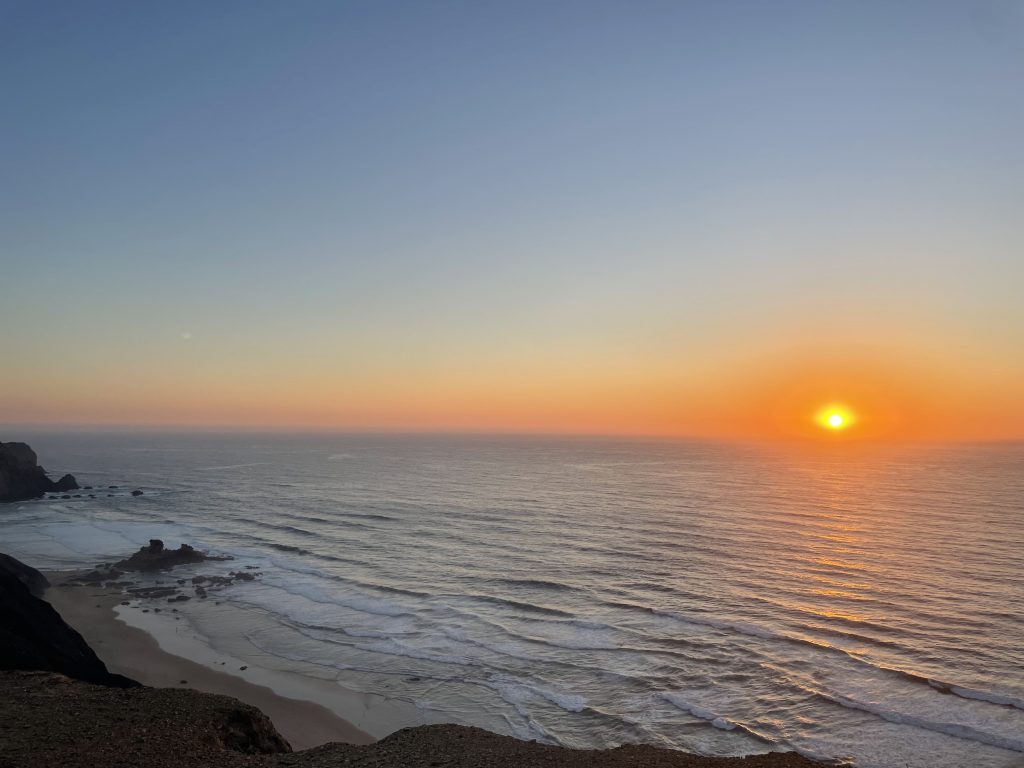 Nachdem ich meinen Nachmittag dort am Strand verbracht habe, bin ich zum Sonnenuntergang auf die Klippe gewandert, welche direkt angrenzend war. Ca. 100 Höhenmeter ging es aufwärts, bevor man oben einen Aussichtspunkt erreichte. Je näher der Sonnenuntergang rückte, desto mehr Menschen versammelten sich auch auf besagtem Aussichtspunkt. Und ich weiß wieso. Mit dem Blick auf hunderte Meter von Klippen, Felsen und Gestein, tosenden Wellen und einem malerischen Strand, zeigte die Sonne sich durch den leichten Nebel, welcher auf dem Strand lag, als großer, orange-roter Ball. An diesem Abend habe ich einen der schönsten Sonnenuntergänge bisher gesehen.