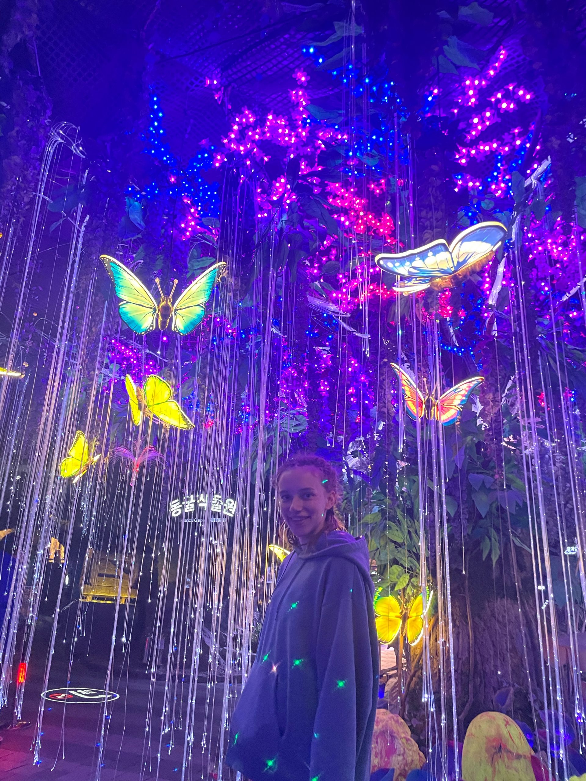 Das letzte, wovon ich heute noch erzählen möchte, ist eine alte Mine die wir uns angesehen habe. Die Mine ist relativ mittig, beziehungsweise etwas südlich innerhalb der Stadt Seoul zu finden. Sie wurde zwischen 1910 und 1945 errichtet und zum Rohstoffabbau genutzt, hauptsächlich für Gold und Kupfer. Zu dieser Zeit war Korea von Japan besetzt und so wurden die Koreaner in dieser Mine hauptsächlich ausgebeutet und harter physischer Arbeit ausgesetzt. Nachdem Japan 1945 kapitulierte wurde der Abbau in der Mine im Jahr 1972 abgebrochen und sie wurde zu einem Lagerraum umfunktioniert, in dem Garnelen gelagert wurden. In 2010 wurde sie dann noch einmal umfunktioniert und ist bis heute offen für die Öffentlichkeit, erzählt genau diese Geschichte in Form von Bildern und ist aber hauptsächlich eins: Ein Ort für Kunst. Die Idee ist es, den dunklen Hintergrund der Geschichte zu überdecken und neues Leben hineinzubringen. Deswegen sind dort überall Licht-Installationen angebracht, entweder mit Tausenden LED Lampen oder mit Beamern, dieser Höhle tatsächlich neues Leben einhauchen. Außerdem gibt es verschiedenste Aquarien mit exotischen Fischen und unser kleines Highlight: Eine 42 Meter große Nachbildung von Smaug, dem Drachen aus Herr der Ringe. Dort stehen auch noch Gollum und Gandalf, um die Sammlung fast vollständig zu machen.