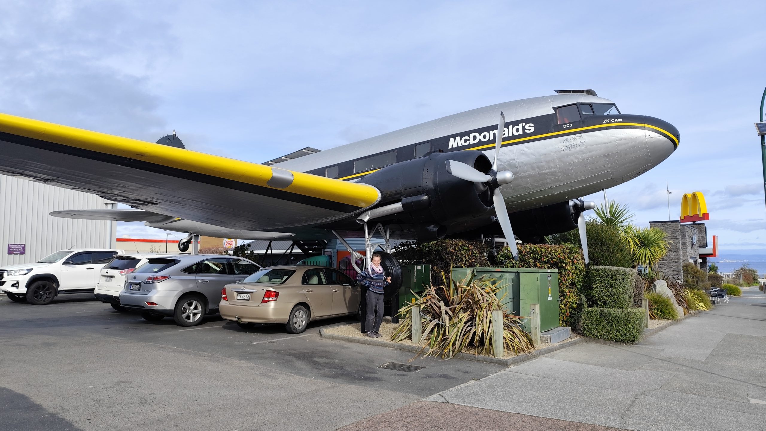 Bei dem Herumfragen in der Innenstadt haben wir einen sehr besonderen McDonald‘s gefunden. Das Geschäft selbst sah sehr normal aus und bestand aus einem Innenbereich sowie einem kleinen Spielplatz mit überdachten Tischen draußen. Das einzigartige war jedoch der dritte Ort zum Essen. Denn direkt neben dem Spielplatz stand ein kleines Flugzeug! In dem kleinen Passagierflugzeug waren Tische vor den runden Fenstern eingebaut und selbst in das Cockpit konnte man einen Blick werfen. Der Flieger wurde in den 40ern gebaut und stand bereits auf dem Gelände, als es viele Jahre später von McDonald‘s gekauft wurde. Alleine um dieses Flugzeug zu sehen (und um eine kleine Pause von der Jobsuche zu bekommen) haben wir uns eine Pommes geteilt und sie in dem Flugzeug verspeist.
