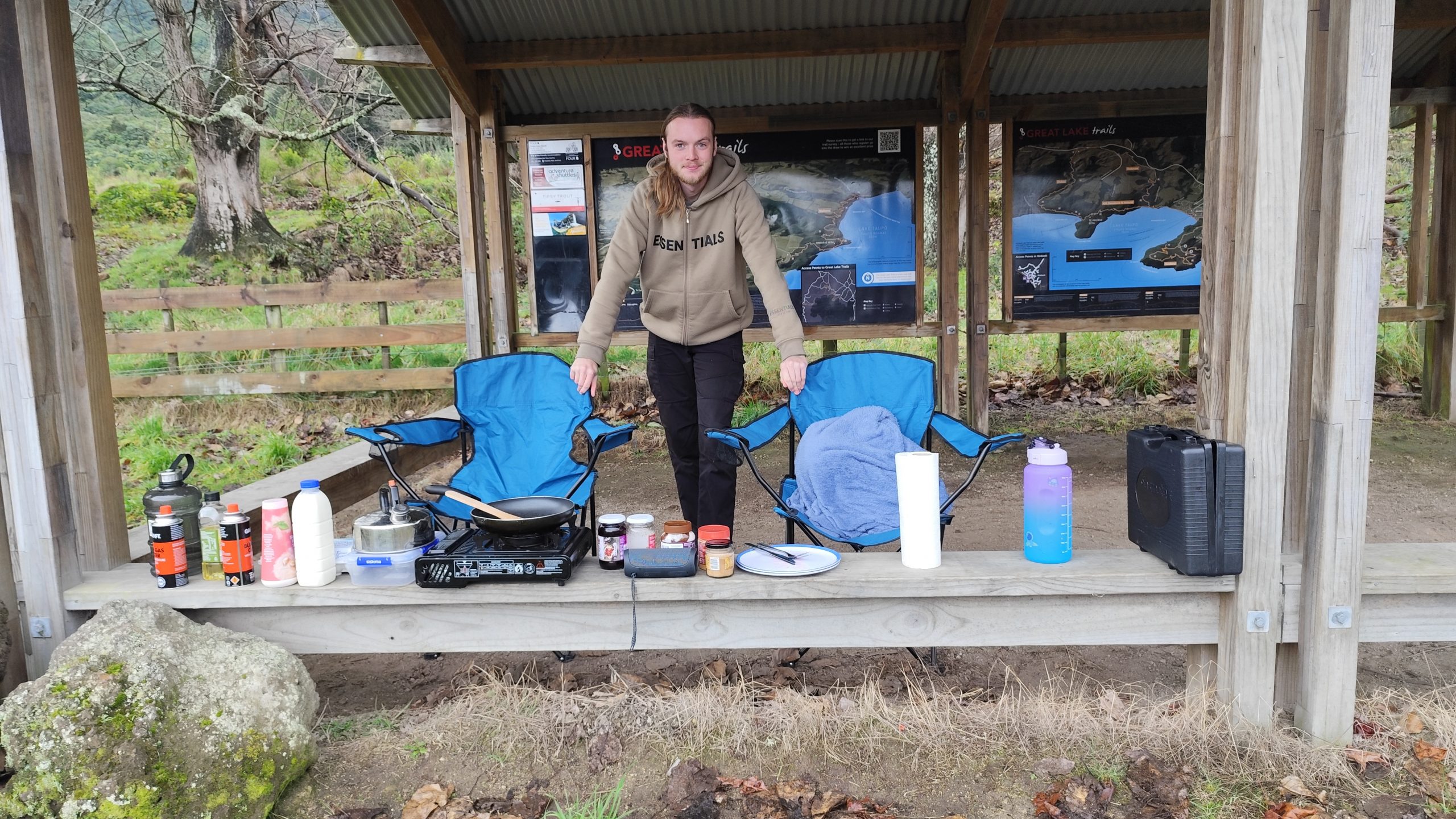An diesem Ort haben wir am 08. August dann auch Thies‘ einjähriges Reisejubiläum gefeiert. Passend zum Tag hatten wir traumhaftes Wetter und haben uns einfach nach draußen gesetzt und Pfannkuchen und Apfelcrumble gegessen. So lässt es sich wirklich gut feiern!