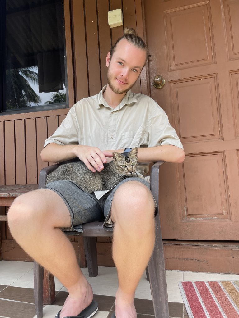 Ein kurzer Exkurs zu der Katze: Gleich am ersten Tag hat uns auf der Veranda eine Katze besucht. Sie war gleich sehr zutraulich und saß eine ganze Weile bei uns, bevor wir sie aussperren und schlafen gehen mussten. Seitdem war sie an jedem weiteren Abend wieder bei uns und wurde immer zutraulicher, bis zu dem Punkt dass sie mit uns in unser Zimmer kam und sich sogar schnurrend durch die Gegend tragen ließ. Ich glaube wir haben sie aus Versehen adoptiert.
