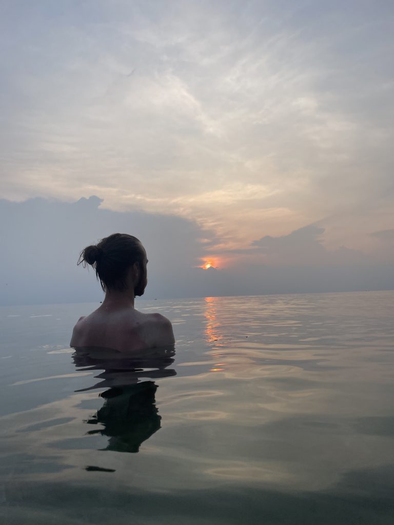 Nachdem wir in Selang angekommen sind, ging es gleich und ohne Umwege ins Wasser. Sowohl wir als auch unsere Kleidung waren mittlerweile durchtränkt und die Erfrischung im Meer hätte nicht besser sein können. Da es aber schon abends war, wollten wir uns relativ schnell wieder auf den Rückweg machen – das aber nicht noch einmal durch den Dschungel, sondern diesmal mit dem Wassertaxi. Und so fuhren wir noch knapp 10 Minuten auf einem kleinen Boot zurück zu unserer Unterkunft. Wie wir dann auch bald rausgefunden haben, hätte das auch kein bisschen später passieren dürfen.