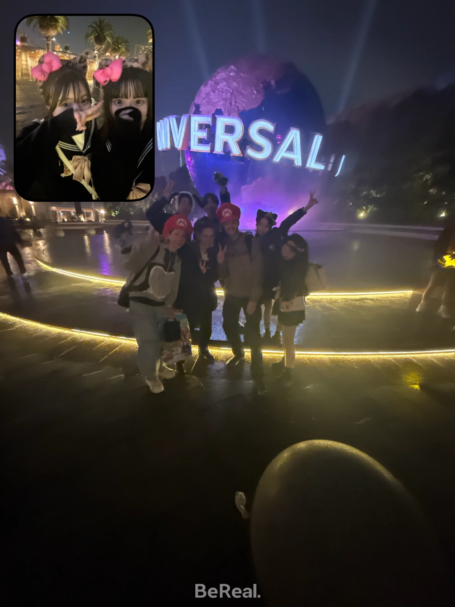 Am Ausgang hatten wir noch eine lustige Situation mit einer Gruppe japanischer Mädchen. Jennie hatte sie gefragt, ob sie ein Foto von der ganzen Gruppe mit dem Universal-Logo machen soll. Offenbar gab es aber ein Missverständnis, denn die Gruppe wollte daraufhin ein Bild von uns machen. Am Ende ist ein gemeinsames Bild entstanden, was sie uns anschließend auch geschickt haben. Die Erfahrung war sehr interessant, denn die Gruppe war sehr laut, aufgedreht und laut Jennie erst in der 8. oder 9. Klasse. Thies und ich hätten sie eher in unserem Alter verordnet, aber mit den aufwendigen Outfits und den stark geschminkten Gesichtern lagen wir offenbar ein Stück daneben!