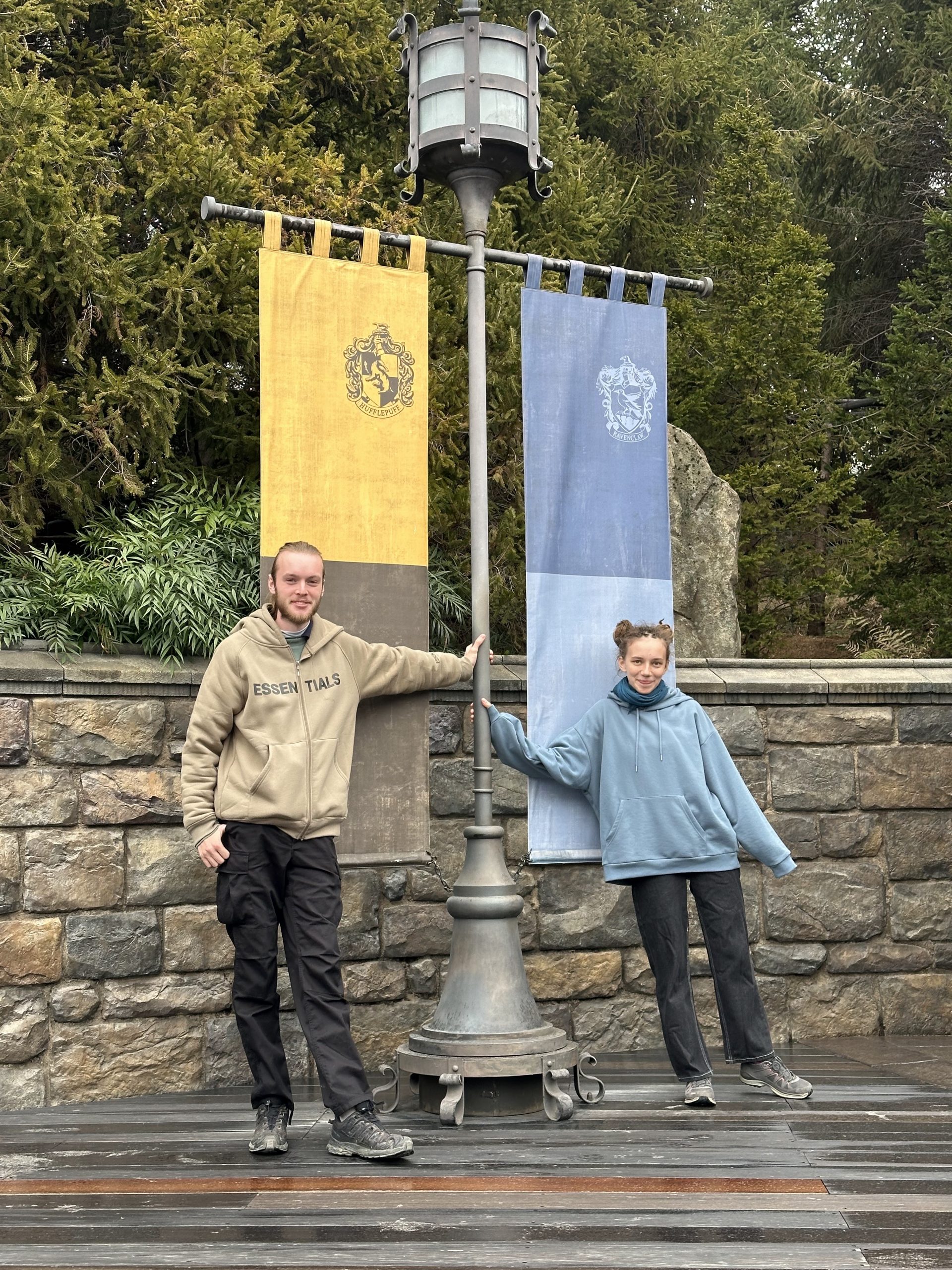 Unsere erste Station war auch schon mein liebster Teil des Parks: Hogwarts! Als überzeugter Harry-Potter-Fan war das für mich natürlich ein absoluter Traum! Durch ein kleines Waldstück ist man am Fliegenden Ford Anglia und dem Hogwarts-Express vorbei zu einer lebensgroßen Nachbildung des Dorfes Hogsmeade gelangt. Dort gab es viele Geschäfte, die man aus den Büchern und Filmen kannte. Neben Harry-Potter-Süßigkeiten konnte man dort aber auch Schuluniformen, Umhänge, Besen, andere Accessoires und Zauberstäbe kaufen. Mit den Zauberstäben konnte man im Hogsmeade Dorf sogar kleine Zauber wirken. Durch die richtige Bewegung haben sich Türen geöffnet, ist Rauch aus einem Schornstein gekommen oder haben Koffer angefangen zu fliegen! Obwohl das alles wirklich toll ist habe ich mich zusammengerissen und nichts von alldem gekauft. Das muss ich mir einfach als Näh-/Häkelprojekt für merken, wenn wir wieder zurück sind!