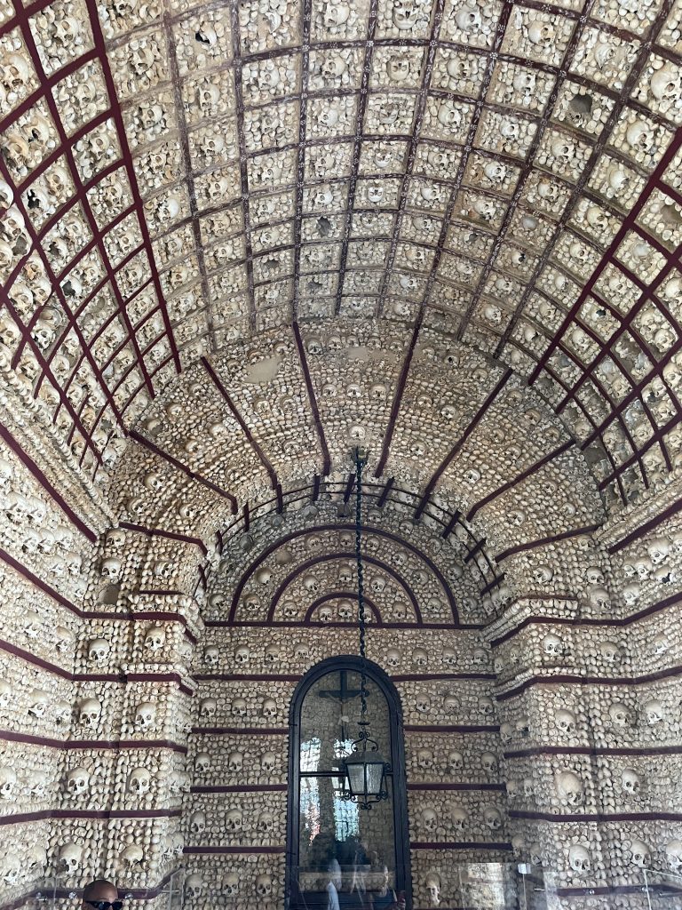 Nach ein paar Stunden erkunden in der Faroer Innenstadt, habe ich mir die Eglesia Collo (?) angeguckt, eine erstaunlich schöne Kirche, welche im Innenhof einen Raum stehen hat, welcher an allen Wänden und der Decke mit menschlichen Schädeln und Knochen dekoriert ist. Insgesamt sind in dem Raum und drum herum wohl über 1000 Schädel platziert. Leider gab es keine Beschreibung, wieso dies so gestaltet wurde. Bei Ikea hätte man sicherlich eine menschenfreundlichere Lösung gefunden.