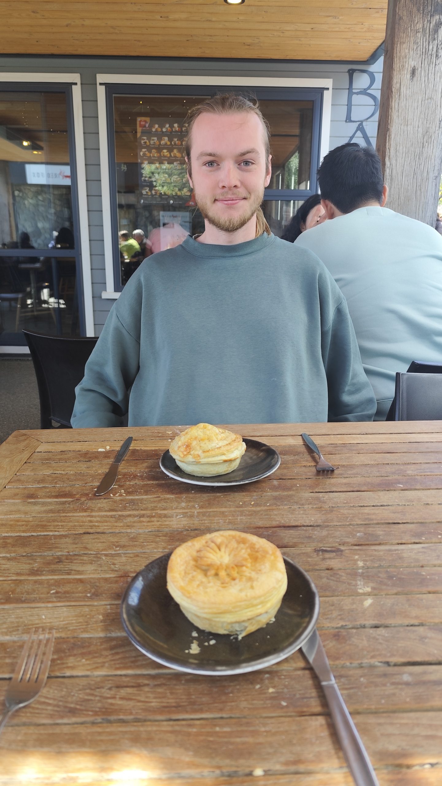Noch einen Tag später haben wir endlich die Bäckerei aufgesucht, die auf Google Maps überdurchschnittliche viele (und vor allem sehr gute) Bewertungen hatte. Wir hatten schon von verschiedenen Menschen gehört, dass wir das typisch Neuseeländische Gebäck dringend testen sollten, das hat sich hier also sehr angeboten. Bei dem Gebäck handelt es sich um kleine, herzhafte Küchlein aus Blätterteig, die Klassischerweise mit Schweinefleisch gefüllt werden. In der beliebten Bäckerei gab es sie jedoch in vielen verschiedenen Geschmacksrichtungen und so konnte auch ich ein vegetarisches Küchlein probieren. Im Nachhinein ist es vermutlich gut, dass wir uns erst so spät an die „Pies“ heran gewagt haben, sonst hätte ich vermutlich mein gesamtes Geld in Bäckereien und Restaurants dafür ausgegeben. Wir waren beide wirklich begeistert und nur unser fehlender Hunger hat uns davon abgehalten gleich noch eine zweite Portion zu kaufen. Fairlies Backhaus ist also zurecht beliebt und gut gefüllt!