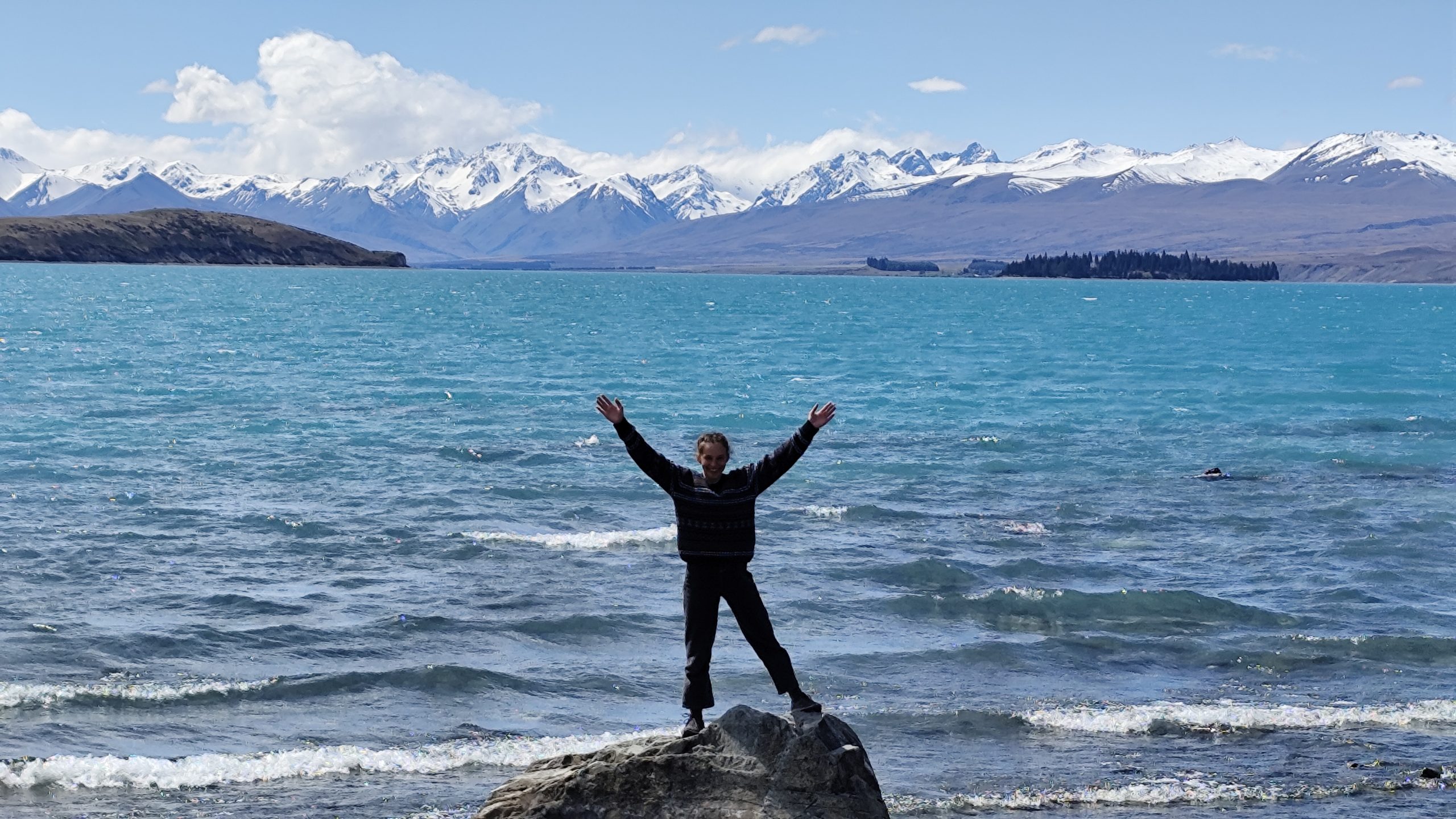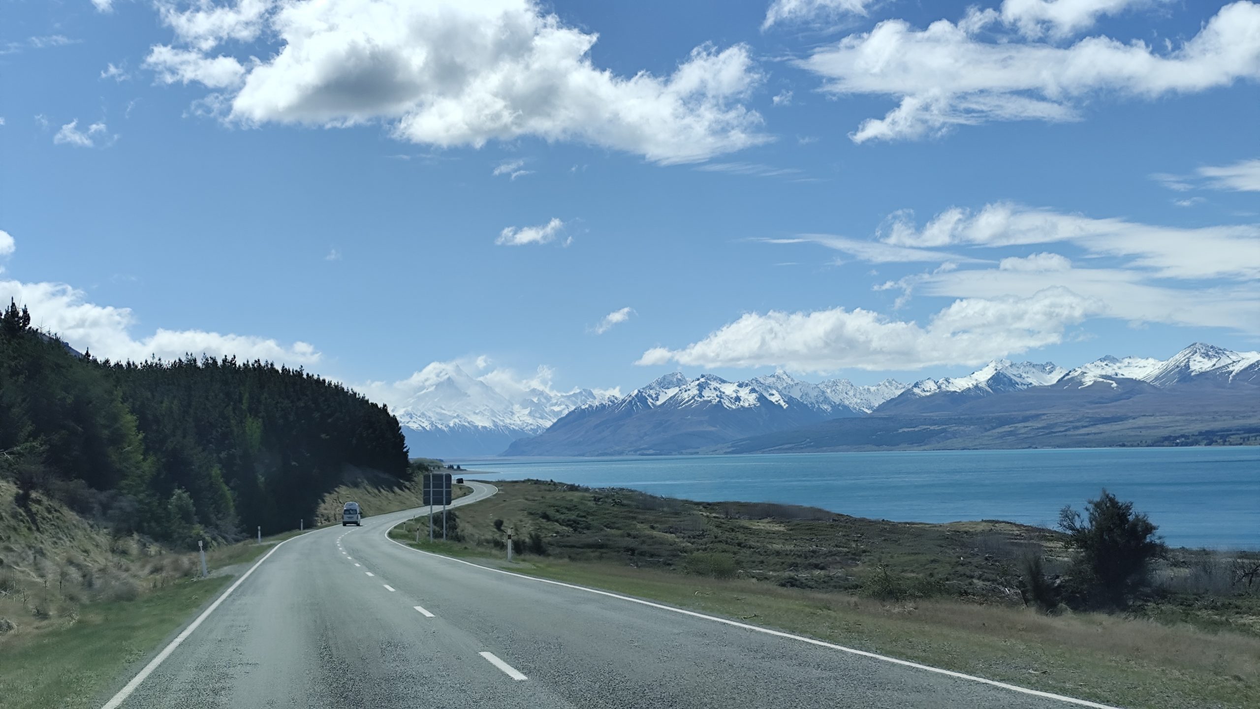 Der dreizehnte Okober war für uns wieder einer der vielen Tage, die wir hauptsächlich hinterm Steuer verbracht haben. Ohne in Christchurch überhaupt irgendetwas gesehen zu haben, immerhin würden wir in wenigen Wochen zu unserem Flug aus Neuseeland heraus ja wieder in die Stadt zurückkehren, haben wir der größten Stadt der Südinsel den Rücken gekehrt und sind weiter nach Süden gefahren. Unser Ziel war der kleine Ort Fairlie, der sehr hübsch, aber auch sehr verschlafen auf uns wirkte. Die Stadt ist eigentlich nur durch eine bestimmte Bäckerei bekannt, die Touristen und Besucher aus aller Welt anzieht. Erstmal haben wir jedoch einen Stellplatz gesucht und die Nacht dann letztendlich auf einer Wiese verbracht, die am Ufer eines Sees lag. Am Abend war der Himmel und die andere Seite des Sees mit Wolken verhangen, weshalb wir erst am nächsten Morgen bemerkt haben was für einen Glückstreffer wir schon wieder gelandet hatten. Denn die Aussicht, die uns am nächsten Morgen empfing, war mal wieder typisch Neuseeland: einfach wunderschön! Vor allem die Berge haben mich sehr überrascht, denn von ihnen hatten wir am Vorabend gar nichts gesehen.
