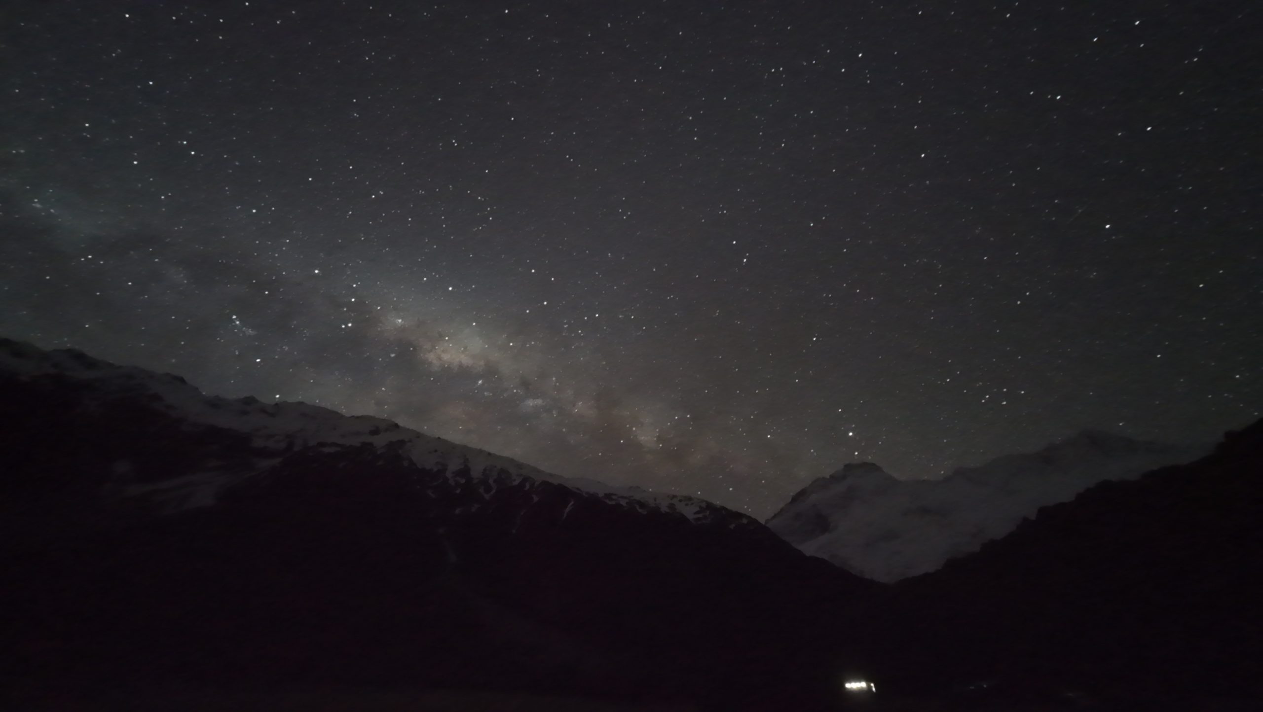 Als die Milchstraße langsam hinter den Bergen verschwand haben wir uns die Decken und die Kamera geschnappt und sind wieder ins Auto gegangen. Viel wärmer war es dort drinnen zwar nicht, aber unter die großen Decken haben die Kälte zum Glück bald vertrieben.