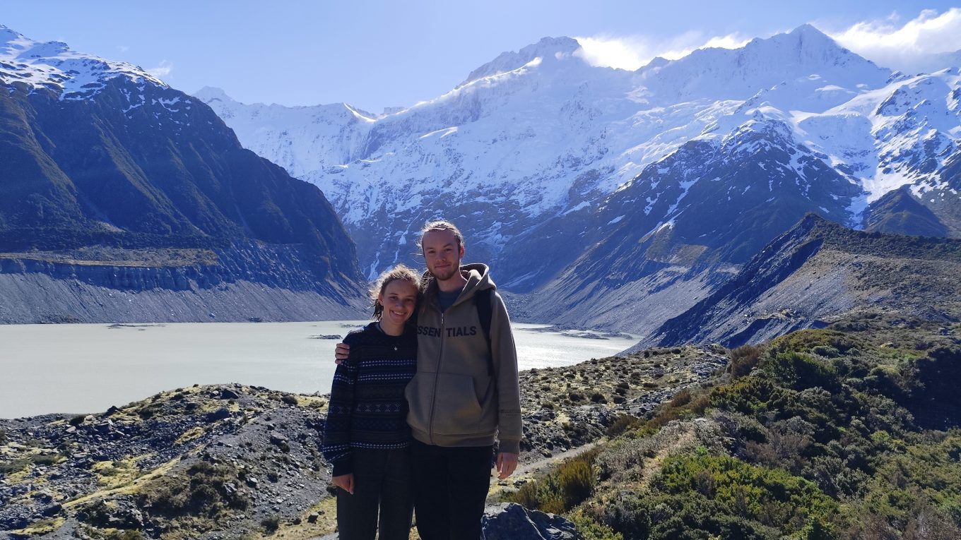 Schon auf dem ganzen Weg hatten wir immer einen tollen Blick auf die umliegenden Berge und auf den letzten paar Höhenmetern ist hier und da sogar noch Schnee auf unserem Weg dazu gekommen. Trotzdem war die Aussicht auf dem Weg nicht mit der Sicht vom Endpunkt zu vergleichen. Als ich am vorherigen Tag noch dachte der Kea-Punkt wäre beeindruckend, musste ich diese Aussage nun noch einmal überdenken. Der Sealy Tarns Point befindet sich nicht ganz oben auf einem Berg, dafür müsste man noch ein Stück weiter wandern, sondern auf einem kleinen Plateau, was sich mehrere hundert Meter über dem Kea Point befindet. Von beiden Aussichtspunkten blickt man grundsätzlich in die gleiche Richtung, mit dem Mount Sefton links und dem Mount Cook ein Stück dahinter zur Rechten. Aber nachdem wir die 2200 Treppenstufen überwunden hatten, konnten wir noch viel weiter in das Tal hineinblicken, was zu Fuße des Mount Cook lag. Nun konnten wir den Gletscher richtig erkennen, der vom Sefton ein Stück ins Tal hineinragte und auch einen weiteren See, der ganz tief hinten im Tal lag. Am besten guckt ihr euch einfach die Bilder an, es war unfassbar schön!